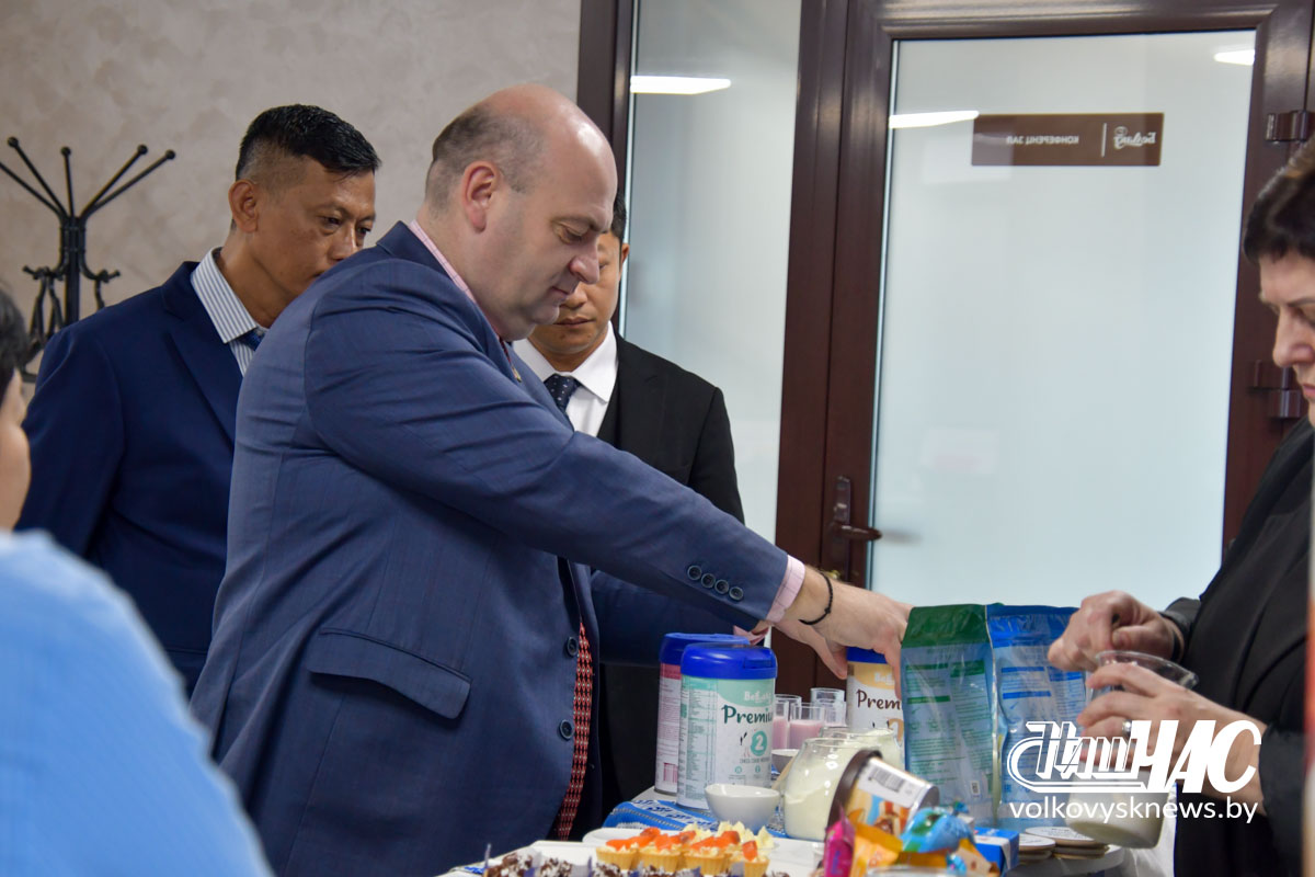Визит на предприятие начался с дегустации его продукции. Гостям был представлен широкий ассортимент молочной продукции, включая детское питание, сухое цельное и обезжиренное молоко. Затем членам делегации был продемонстрирован видеоролик о предприятии, его структуре и производстве.