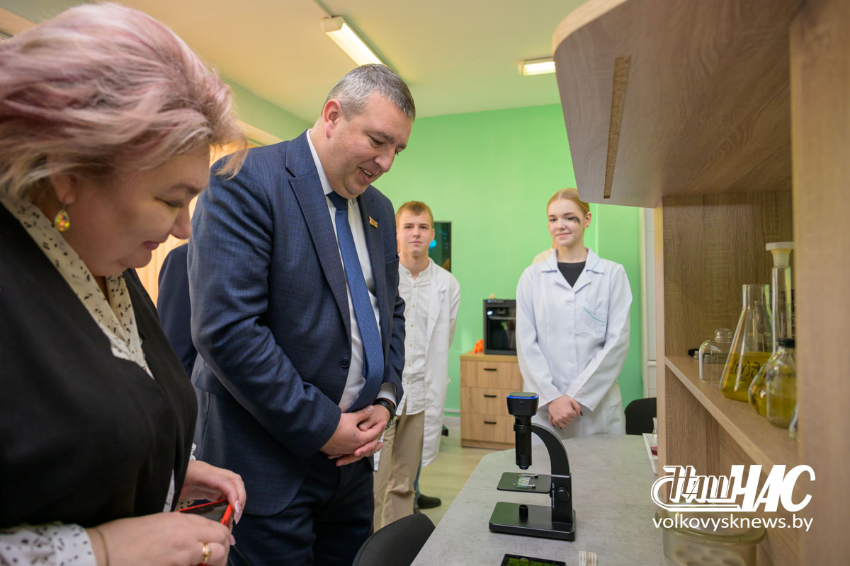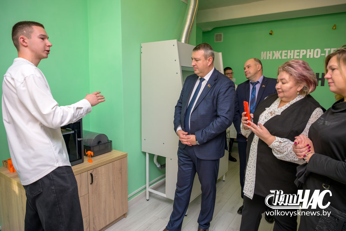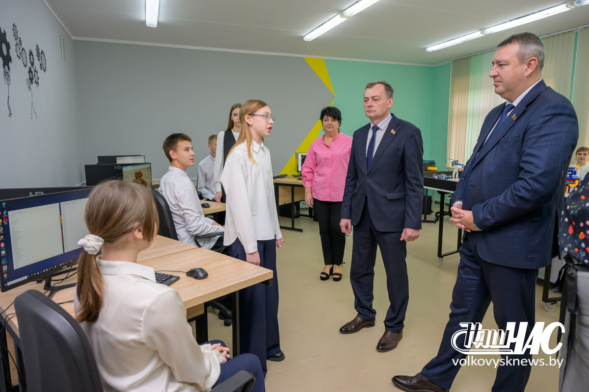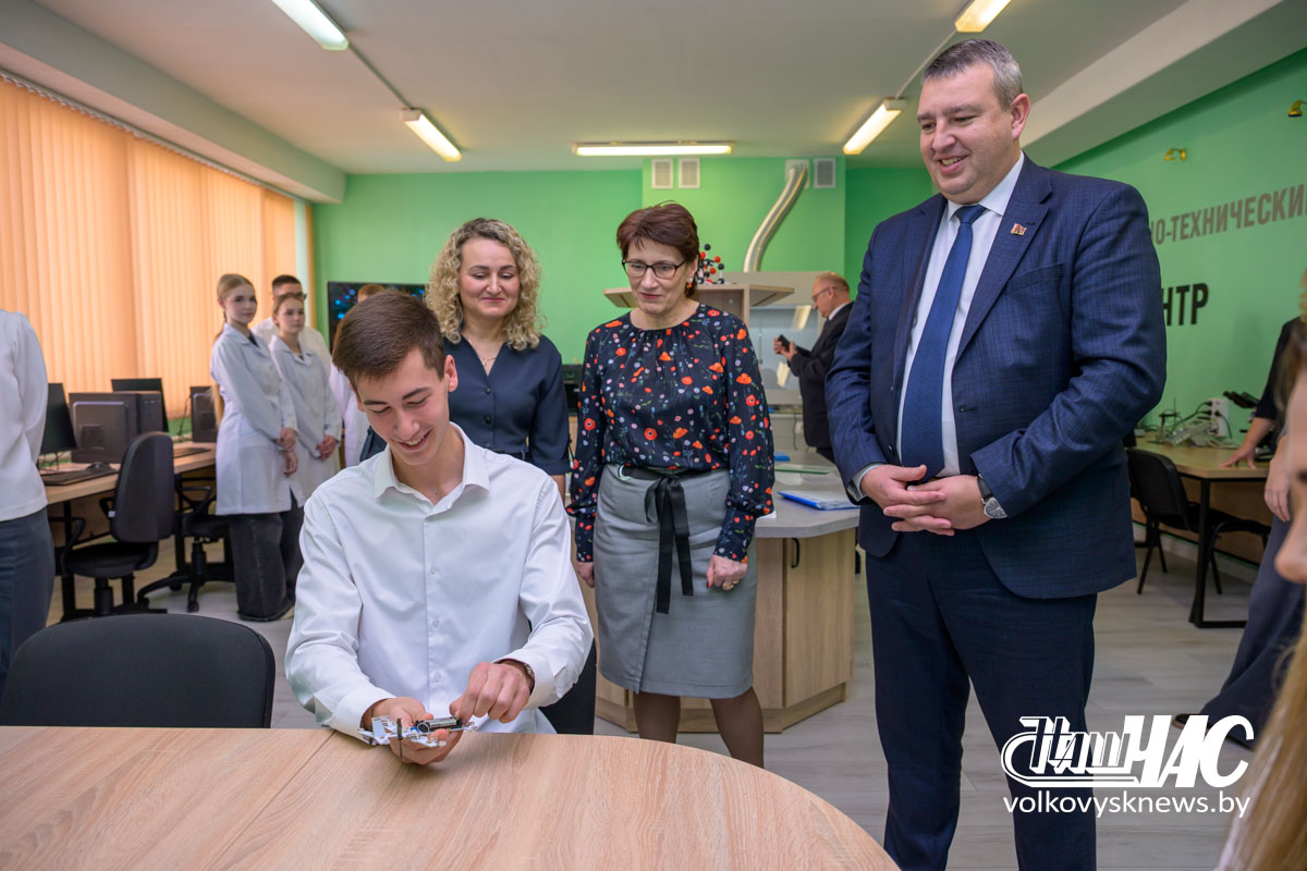 Поздравляя учащихся и учителей с таким знаменательным событием, Игорь Соловей подчеркнул, что цифровизация и информатизация в районе, в том числе и в отрасли образования, будет развиваться и дальше. «Сегодня, наверное, мы уже не мыслим ни одного предприятия, ни одной организации без IT-технологий, серьезного оборудования. А вы, молодежь, — наше будущее, с юных лет знаете эти технологии и инструменты, создаете программы, умеете обслуживать эту современную технику. Беларусь — уже космическая держава, и от вас зависит, сохранит ли наша страна этот статус через десятилетия, останется ли в числе стран с передовыми технологиями. Развивайтесь и учитесь хорошо, потому что именно вам создавать будущее!» — обратился к учащимся заместитель председателя райисполкома. Ребята вместе со своими педагогами провели для гостей небольшие экскурсии по новым инженерно-техническим центрам, продемонстрировав возможности оборудования и технологий искусственного интеллекта, а также свои знания и навыки.