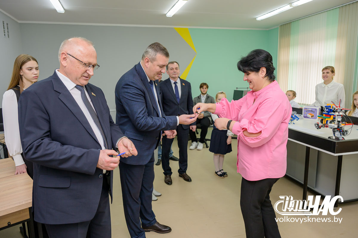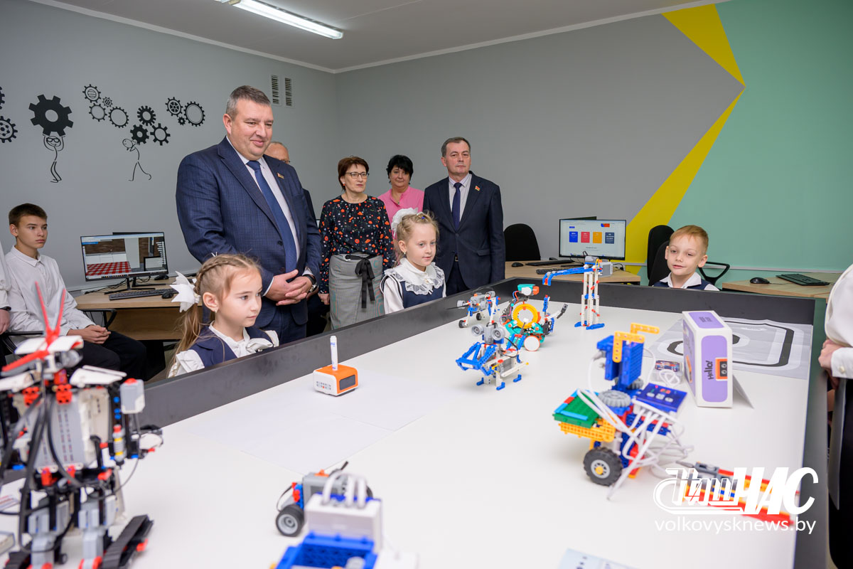 В канун праздника — Дня Октябрьской революции — такие подарки получили педагоги и ученики СШ № 7 г. Волковыска и СШ № 2 г. п. Россь. На праздничные мероприятия, посвященные открытию инженерно-технических центров, прибыли почетные гости: заместитель председателя Волковысского райисполкома, председатель районной организации Белорусской партии «Белая Русь» Игорь Соловей, представители управления образования Волковысского райисполкома во главе с начальником Петром Красько, руководители городских учреждений образования.