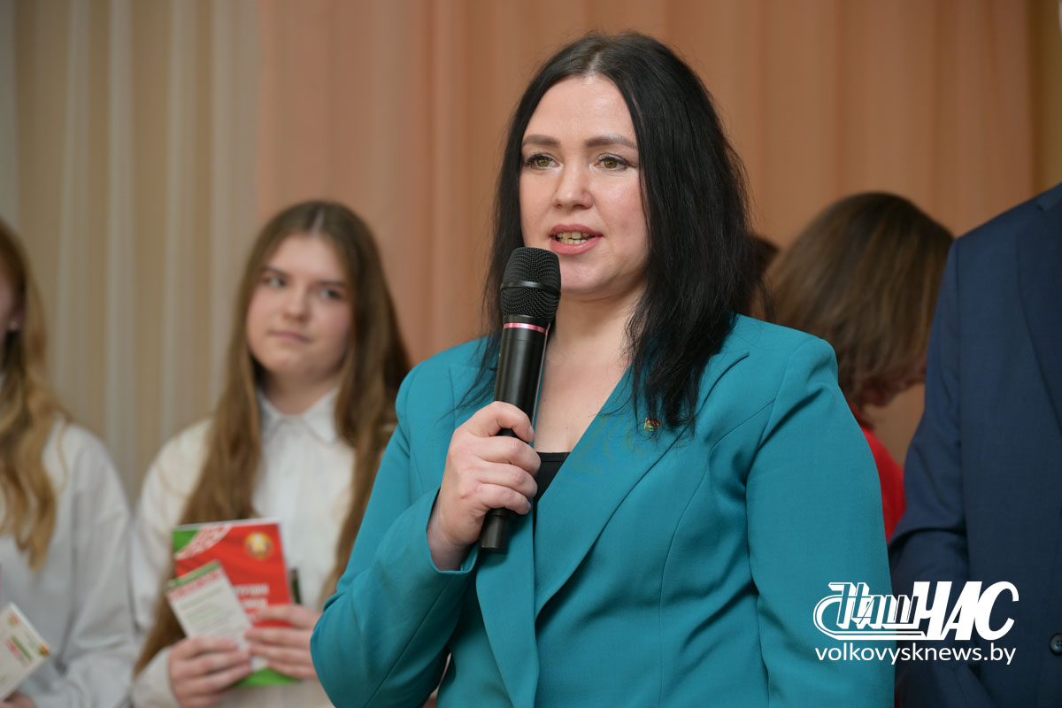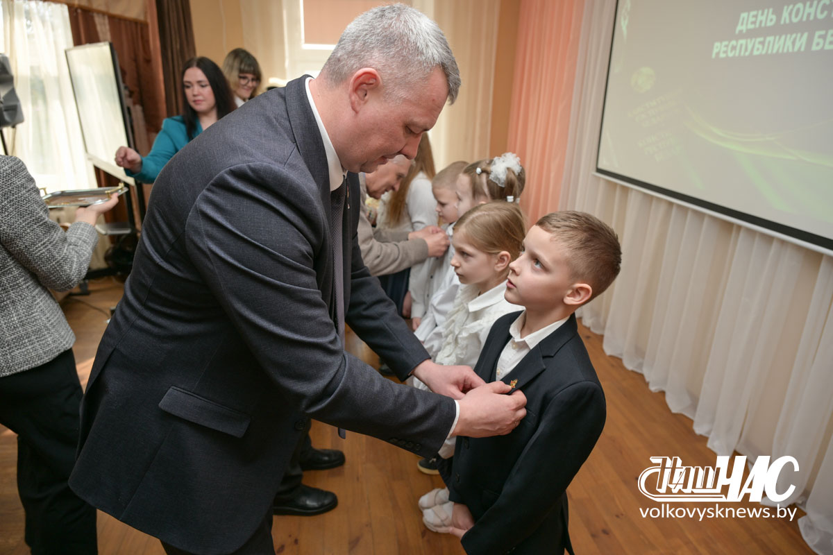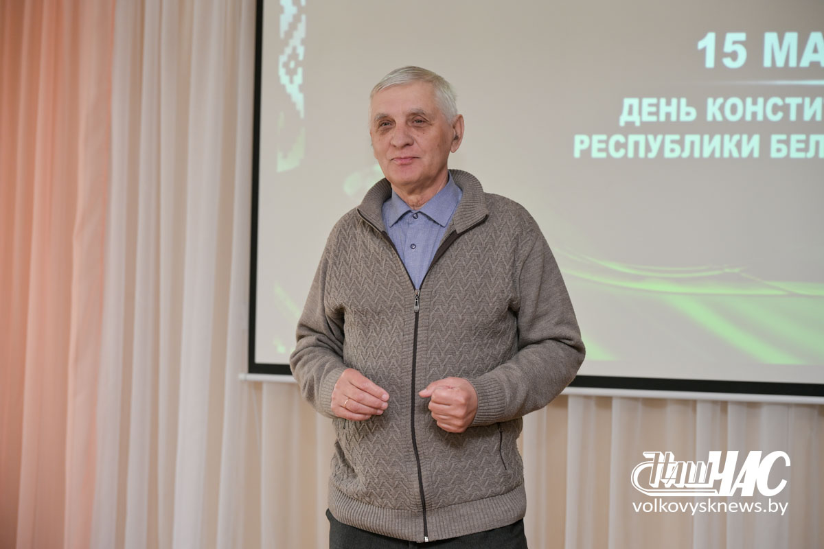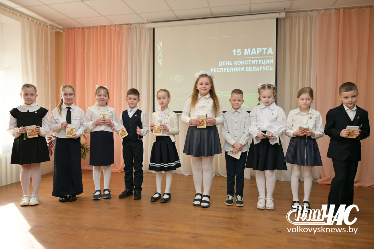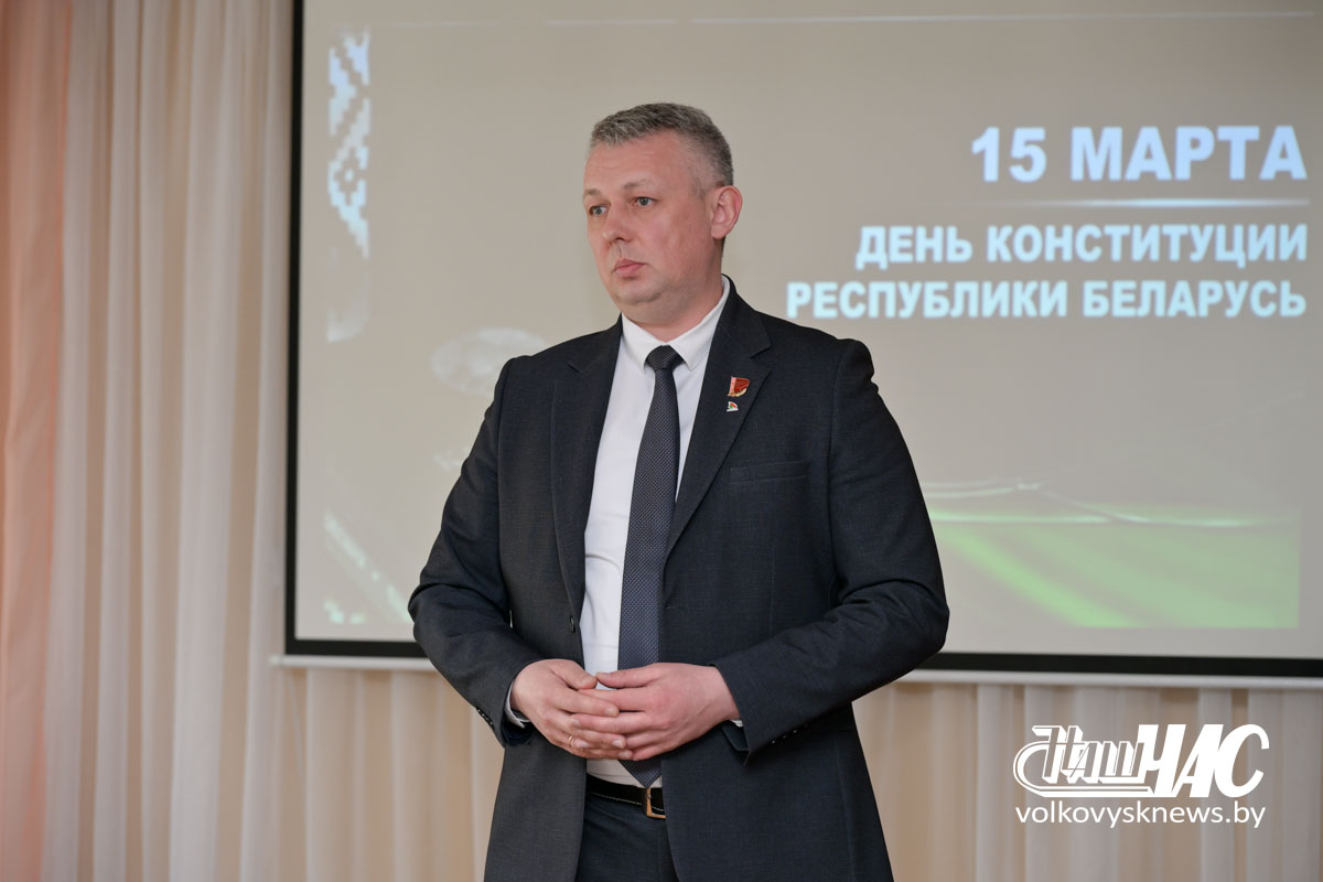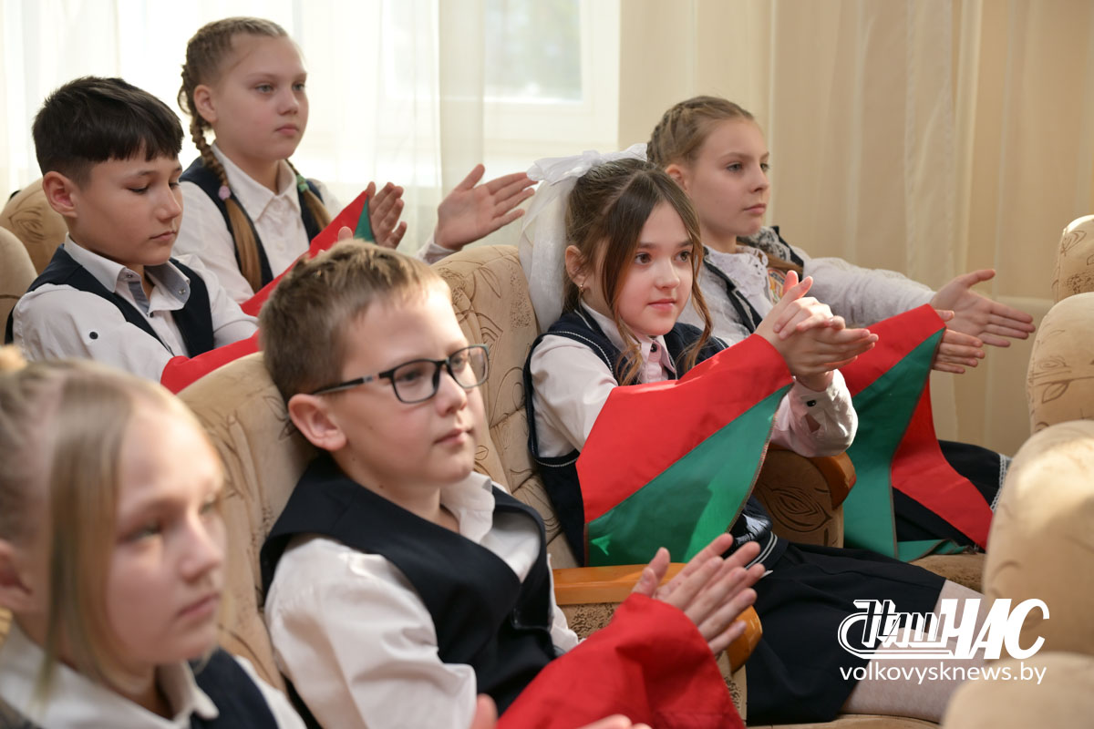 Районная акция «Мы — едины!», приуроченная к Дню Конституции, объединила волковычан всех возрастов — от младших школьников до ветеранов труда. В мероприятии приняли участие почетные гости: заведующий сектором воспитательной и социальной работы управления образования райисполкома Ирина Павлович, главный редактор районной газеты «Наш час», председатель районной организации республиканского общественного объединения «Белая Русь» Дмитрий Юшин, председатель Волковысской районной организации ветеранов Тамара Лугович, член президиума этой организации Игорь Мацейко, первый секретарь РК ОО «БРСМ» Наталья Климчук, председатель Волковысского районного совета ОО «БРПО» Анна Тимошко.