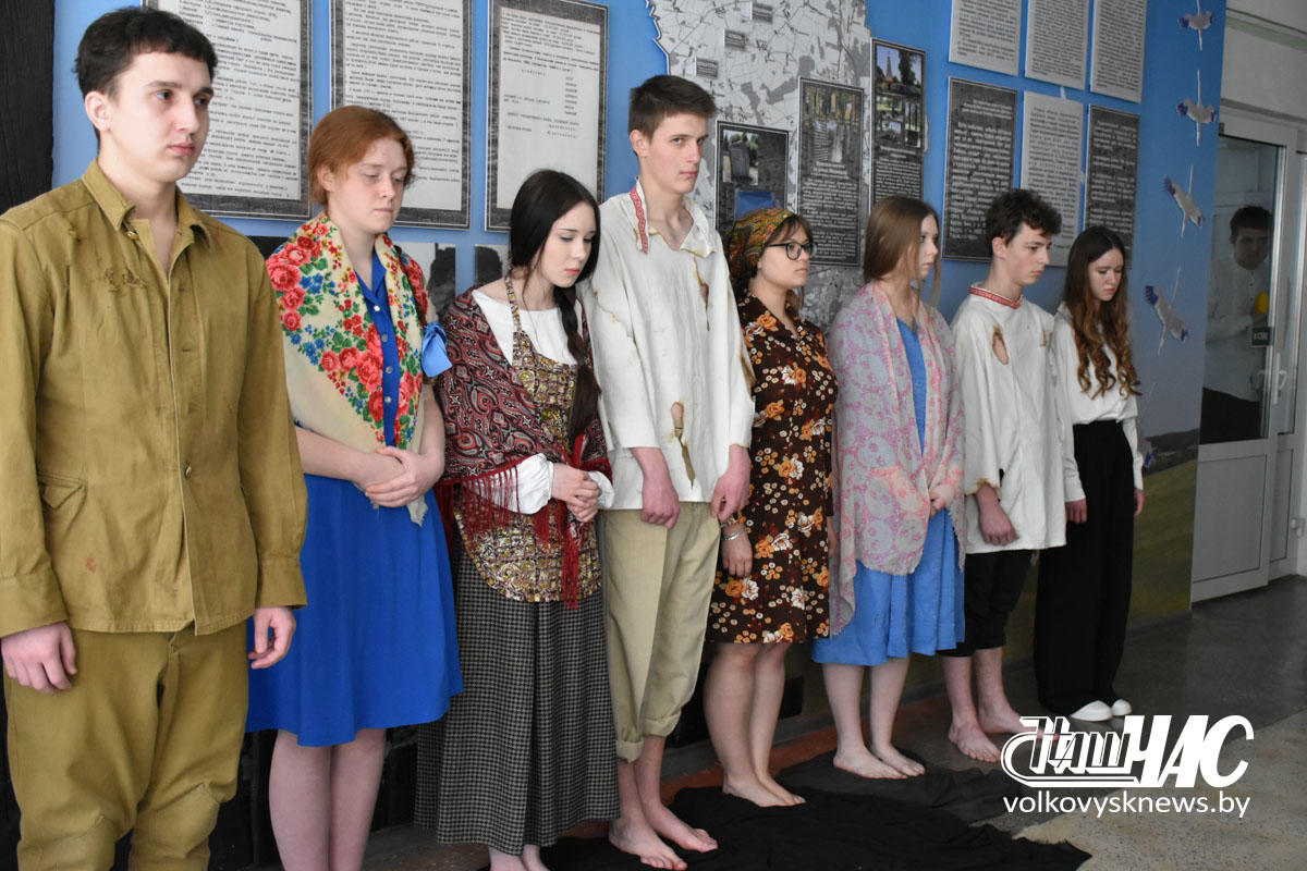 — Недалеко от Волковыска есть деревня Шауличи, сестра Хатыни, которая тоже пострадала от рук нацистов. Чтобы почтить память убитых в годы Великой Отечественной войны, учащиеся 10 «Б» класса подготовили тематический митинг-реквием «Без срока давности», — рассказала руководитель музея гимназии № 1 имени Т. А. Гриченка г. Волковыска Ирина Бушик.