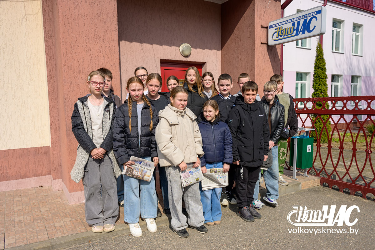25 марта они побывали в редакции Волковысской районной газеты и телерадиопрограмм «Наш час». Ребята посмотрели презентационный ролик, ознакомились с работой отделов редакции, полистали архивные подшивки газет. Мальчишки и девчонки узнали, что собой представляет газетная верстка и приняли участие в съемке небольшого видеоролика. Всех ждала викторина от главного редактора, а самых внимательных и наблюдательных — призы от «районки».