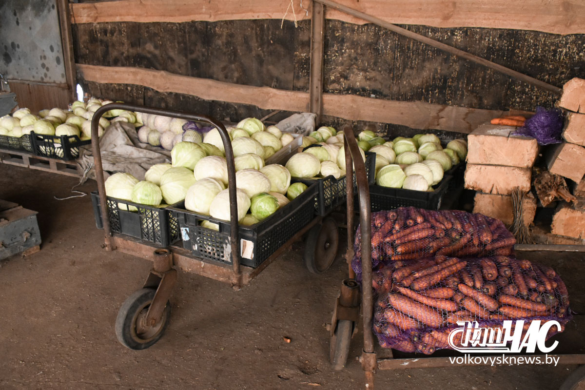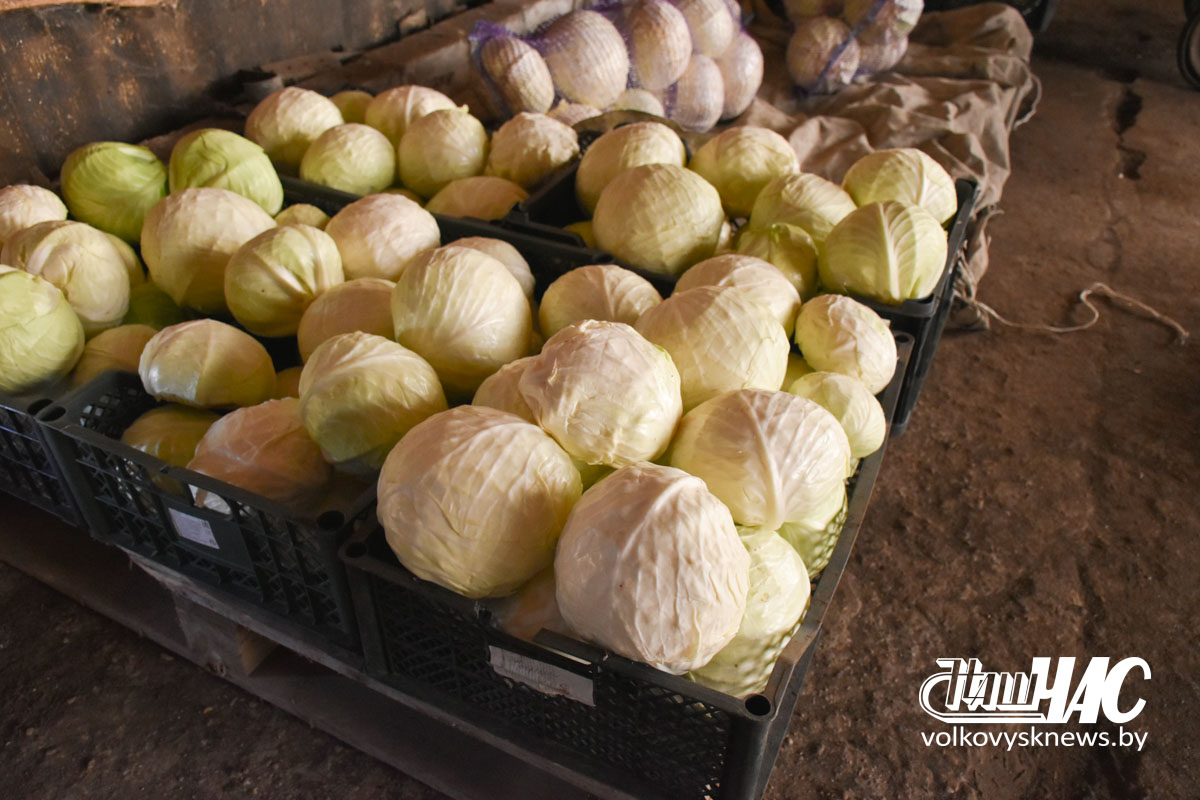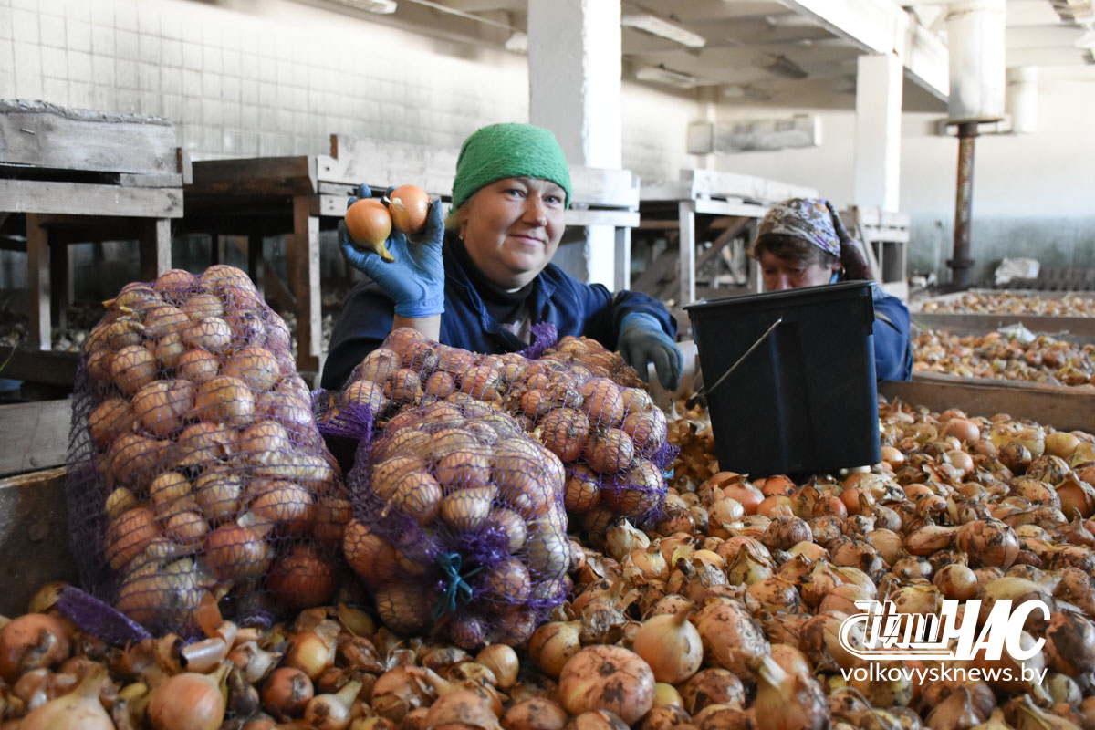Мы отправились в РСКУП «Волковысское», где выращивается больше видов овощей, к тому же здесь под них отведены самые большие площади в районе. Уже наполнены сетчатые мешки белокочанной капустой, морковью. Две работницы предприятия фасуют лук. Стоит отметить, что в этом году восемь хозяйств района выращивали эту культуру, чтобы иметь запас и быть готовыми закрыть потребность населения в нем на все сто процентов.