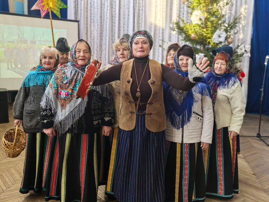 Работников отрасли ждал еще один подарок — их с колядками пришли поздравить артисты Росского Дома культуры. Они разыграли для них сценки, в которых выбирали Гаспадара, лечили Козу, был и Медведь, согласно народной традиции.