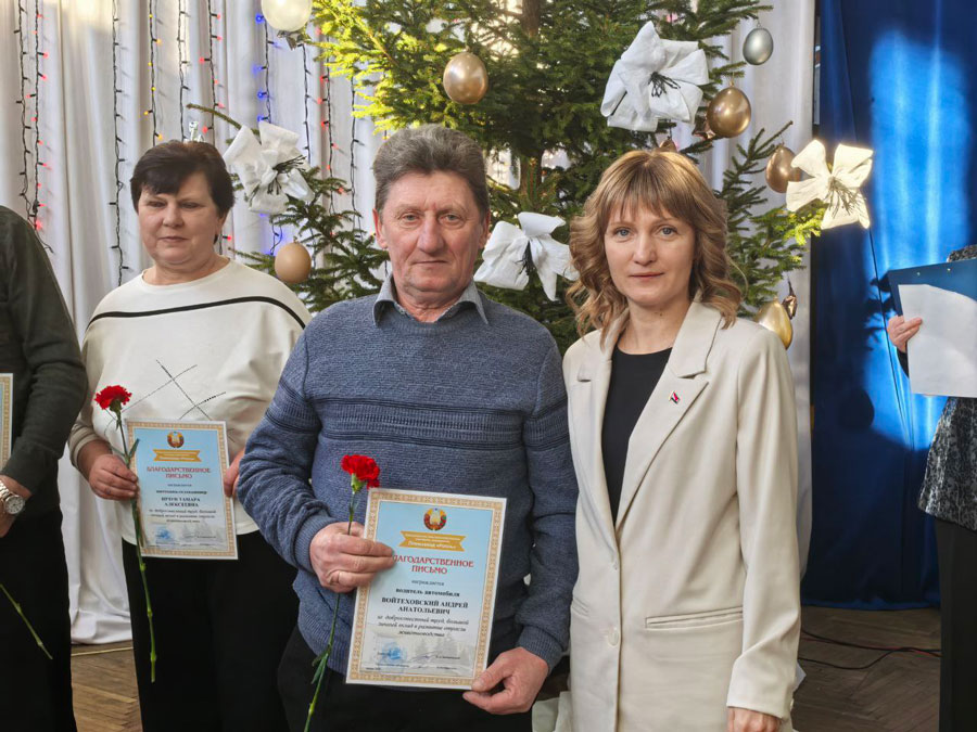 Грамотами Гродненского областного комитета профсоюза работников АПК за многолетний добросовестный труд и высокий профессионализм были награждены бригадир МТФ «Плебановцы» Елена Макей, оператор машинного доения Ирина Выдрич, животновод МТФ «Новое Село» Марина Лянго, оператор машинного доения МТФ «Ендриховцы» Ирина Савчук, ветврач-гинеколог Сергей Харук.
