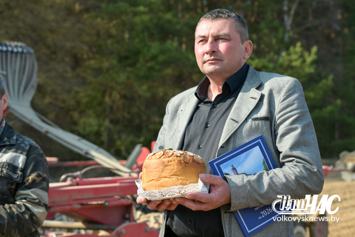 Права провести первую борозду был удостоен Денис Красовский на энергонасыщенном тракторе «Беларус-3522». Механизатор опытный, трудится на земле уже 24 года. Сказал, что «настрой боевой».