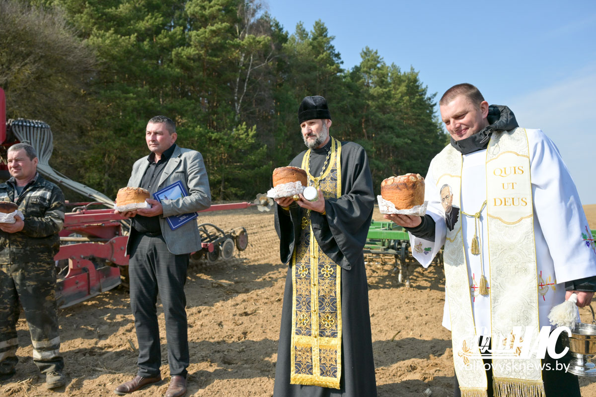 Благословили участников весенней страды протоиерей Сергий Быр, настоятель храма Святой Живоначальной Троицы д. Подороск, и ксендз Геннадий Кухаревич, настоятель костела Святых Петра и Павла деревни Изабелин. Они прочитали молитвы, окропили тружеников села и технику, благословили их на доброе дело.