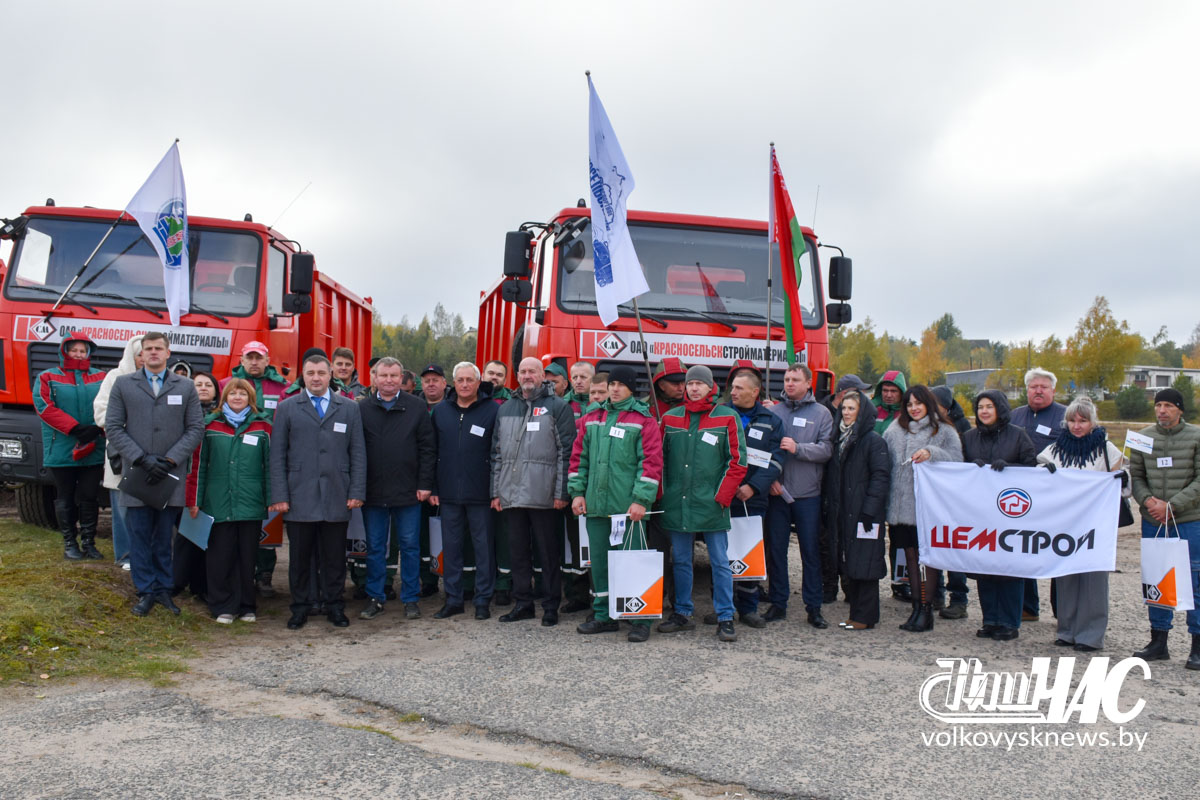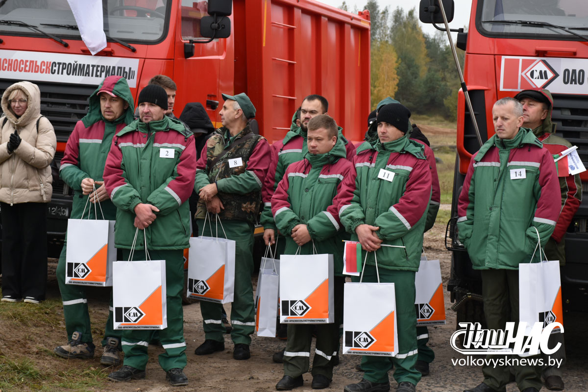 — Приятно проводить такое мероприятие в День отца и накануне вашего профессионального праздника — Дня автомобилиста и дорожника. Этот конкурс послужит началу хорошей традиции в нашем большом трудовом коллективе. Считаю, что сегодня маленькую победу одержал каждый участник. Желаю каждому из вас безаварийной дороги. В ОАО «Красносельскстройматериалы» в текущем году большие инвестиции вложили в техническую составляющую: приобретен 21 автомобиль МАЗ, прицепы, легковые автомобили, бульдозеры и т. д. — более 30 единиц техники. Это будет неплохим подспорьем для нас, что позволит увеличить стабильность нашей работы, — сказал Александр Владимирович.