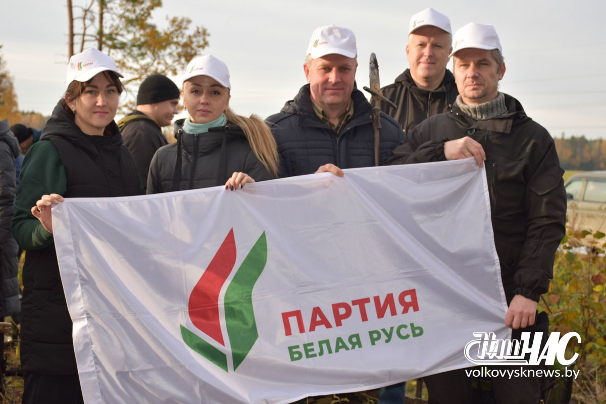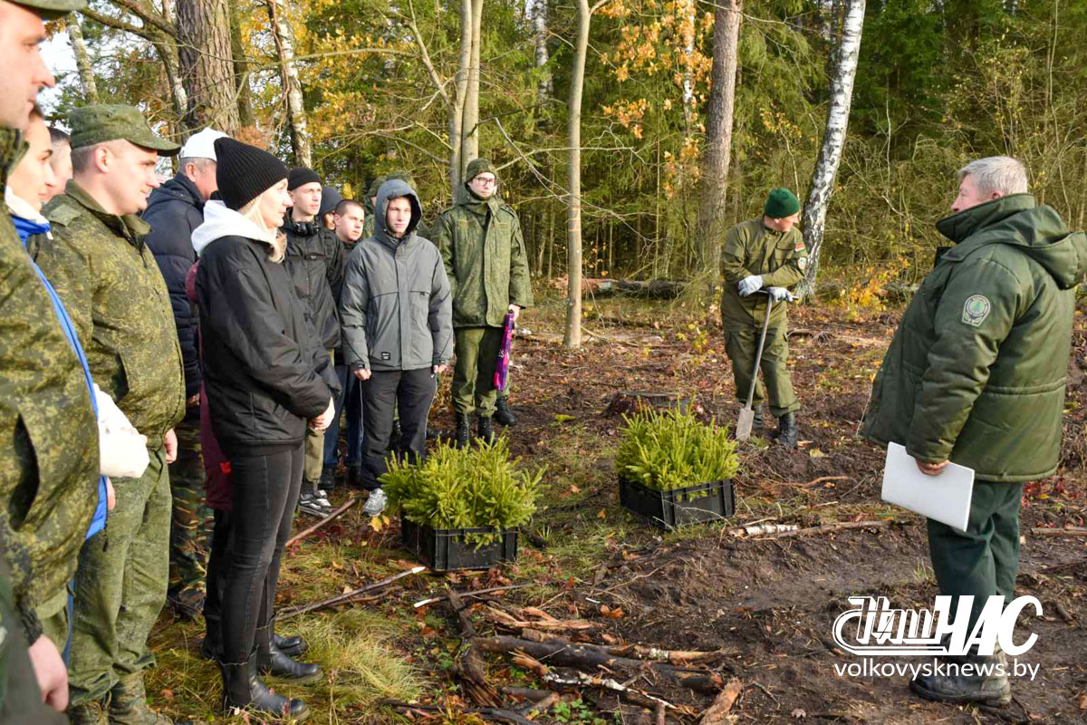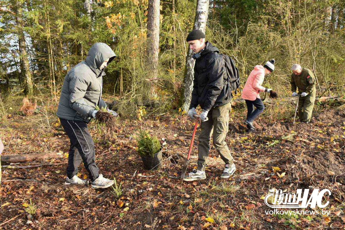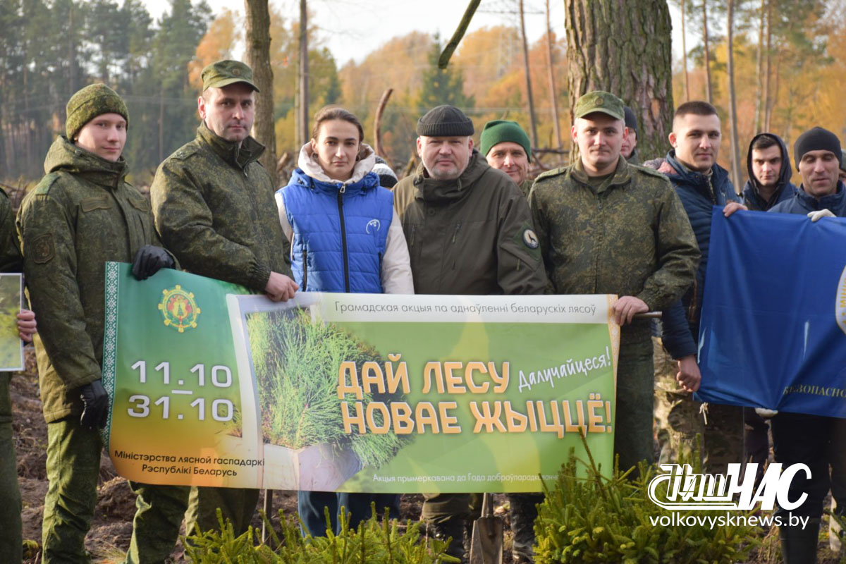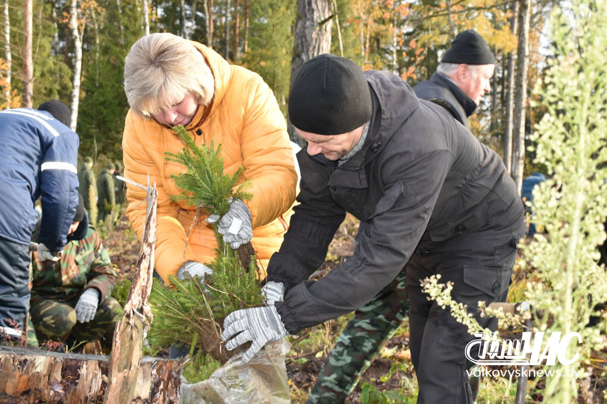 В четверг к проведению акции присоединились работники Волковысского районного исполнительного комитета, члены районного отделения Белорусской партии «Белая Русь», представители горрайинспекции природных ресурсов и охраны окружающей среды, а также силовики — работники военного комиссариата и РОЧС, сотрудники Волковысского отдела Департамента охраны МВД и военнослужащие в/ч 7404 — всего около 40 человек. Работали они в лесном фонде Волковысского лесничества неподалеку от агрогородка Войтковичи: некоторое время назад здесь велась плановая вырубка спелого леса, и сейчас общественность района помогла высадить новые деревья на площади 3,3 гектара. «Кто нам поможет, если не вы?» — обратился к участникам акции лесничий Волковысского лесничества Станислав Горощик, проведя инструктаж по технике безопасности. Мечи и посадочный материал в руки — работа закипела, и через пару часов белорусский лес стал богаче на 18 900 саженцев ели и сосны. А добровольные помощники, многие из которых привыкли проводить рабочие дни преимущественно в кабинетах, с удовольствием потрудились на свежем воздухе.