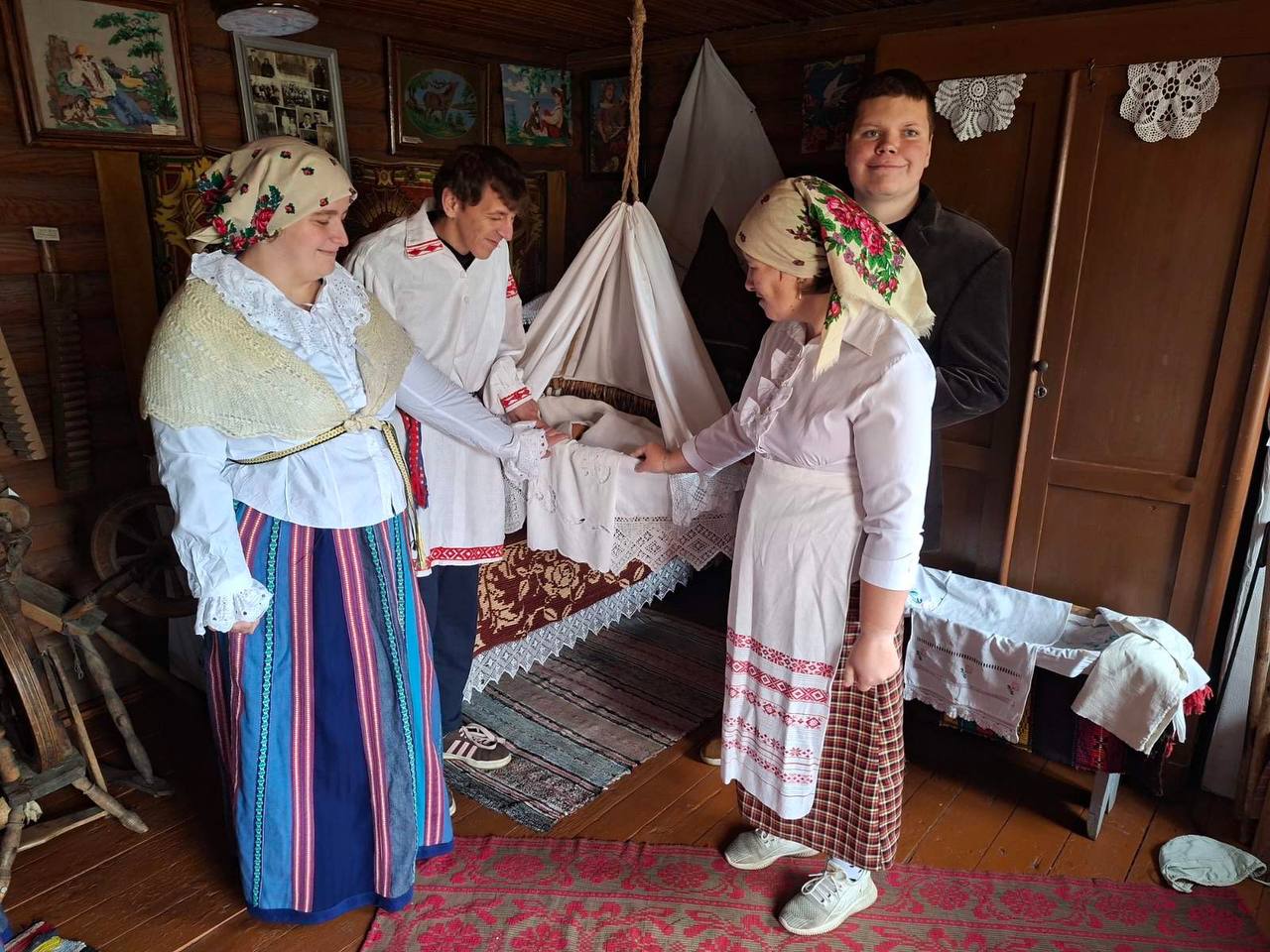 Абрады і звычаі, звязаныя з нараджэннем дзіцяці, існавалі ў Беларусі з даўніх часоў, многія іх элементы захоўваюцца і сёння. На Ваўкавышчыне хрышчэнне застаецца важнай духоўнай падзеяй, якая аб'ядноўвае традыцыі продкаў і сучасны сямейны ўклад. Таму немалаважна, каб сённяшняе пакаленне памятала і разумела звычаі, якія ўваходзяць у “культурны код” беларускага народа. Гурткоўцы даведаліся, як праходзіў абрад, і не проста даведаліся, але сталі яго ўдзельнікамі. У музеі “Беларуская хатка”, сабраліся “бацькі” і “хросныя”, “бабуля-павітуха” і “госці”, каб у адпаведнасці з традыцыямі сабраць дзіця ў царкву, а пасля адсвяткаваць за святочным сталом. Завяршыліся хрэсьбіны, як належыць, “бабінай кашай”.