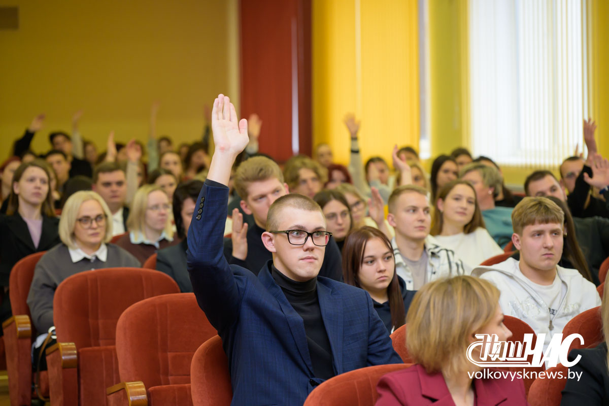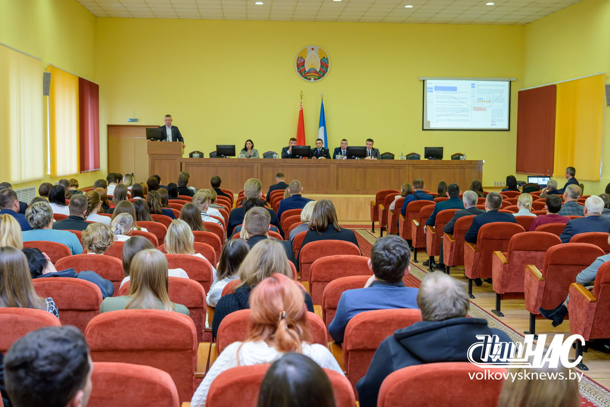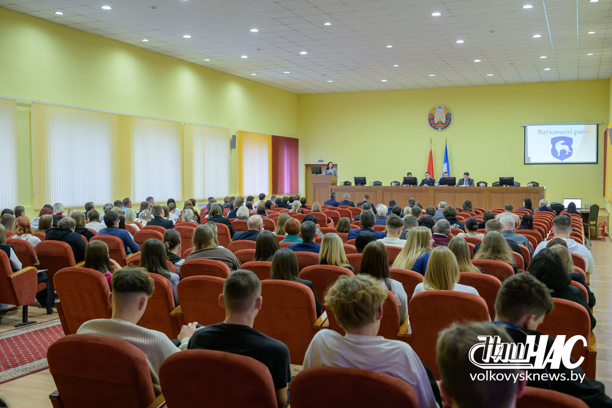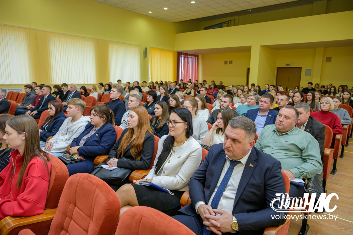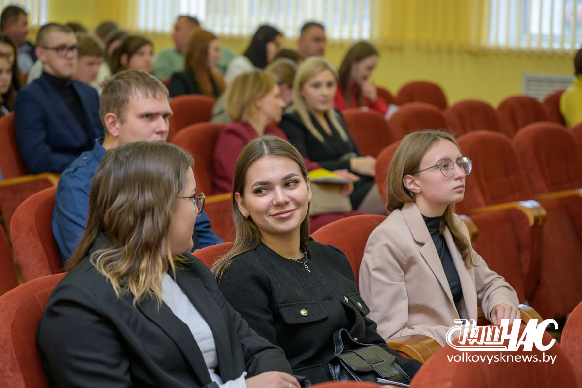 10 ноября в большом зале заседаний Волковысского райисполкома с молодыми специалистами в формате открытого диалога общались член Совета Республики Национального собрания Республики Беларусь, председатель Волковысского райисполкома Дмитрий Захарчук и его заместитель, председатель Волковысского районного отделения Белорусской партии «Белая Русь» Игорь Соловей, а также начальник отдела организационно-кадровой работы райисполкома Сергей Русаченко, первый секретарь райкома БРСМ Наталья Климчук.