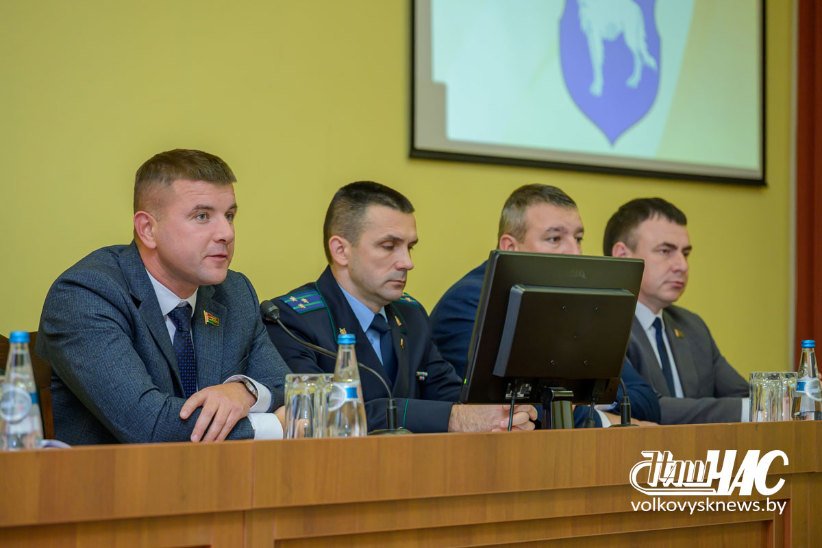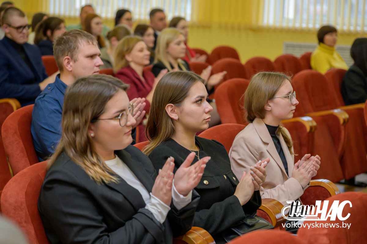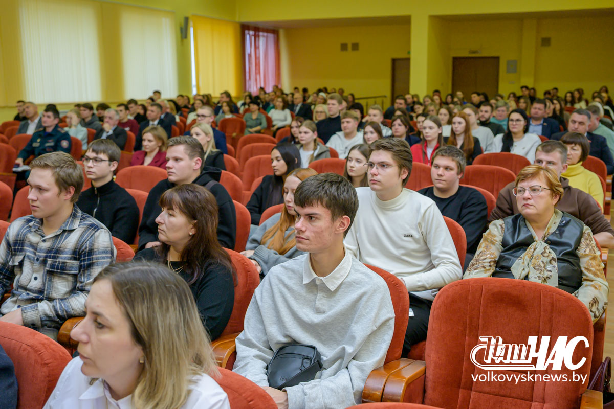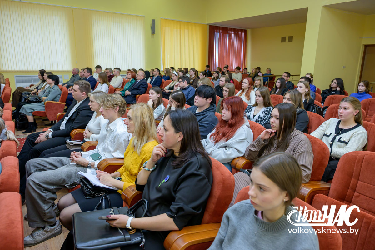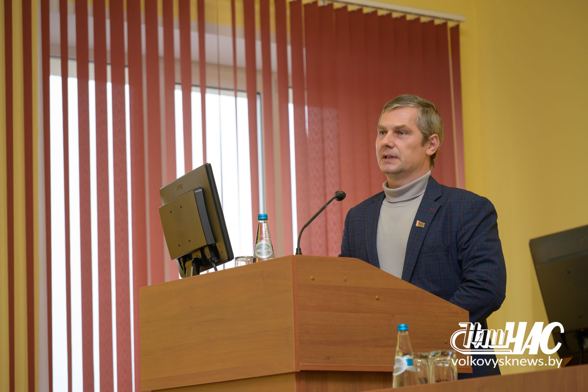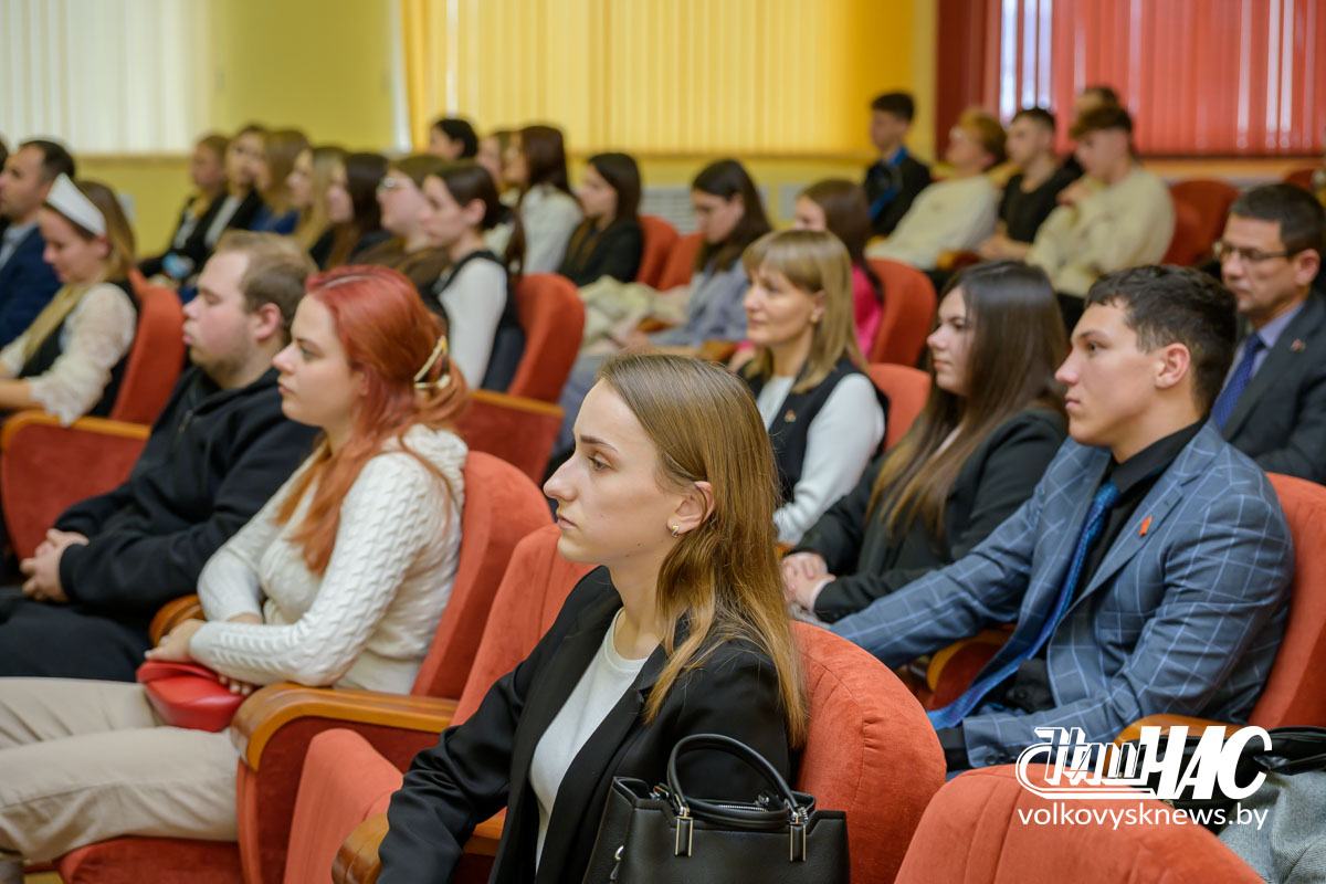 10 ноября в большом зале заседаний Волковысского райисполкома с молодыми специалистами в формате открытого диалога общались член Совета Республики Национального собрания Республики Беларусь, председатель Волковысского райисполкома Дмитрий Захарчук и его заместитель, председатель Волковысского районного отделения Белорусской партии «Белая Русь» Игорь Соловей, а также начальник отдела организационно-кадровой работы райисполкома Сергей Русаченко, первый секретарь райкома БРСМ Наталья Климчук.