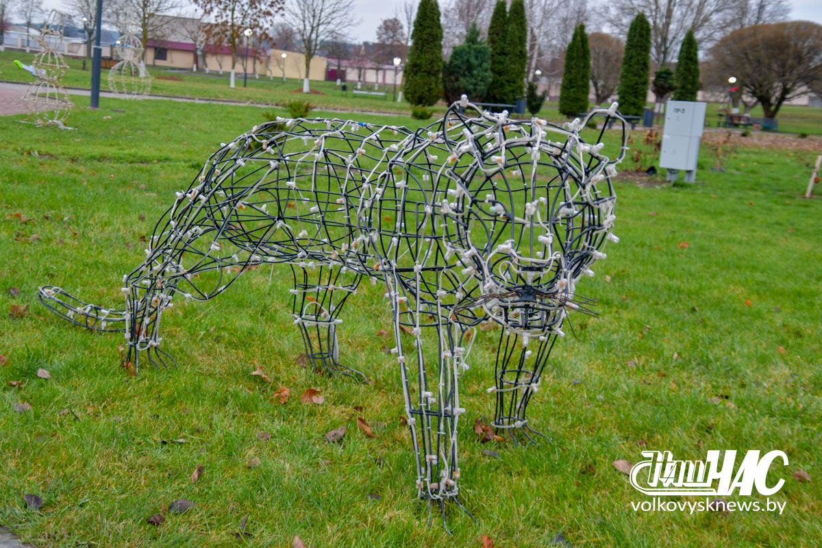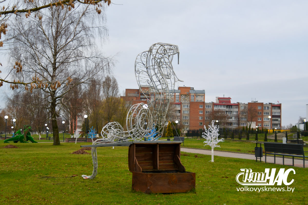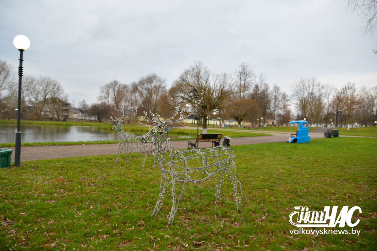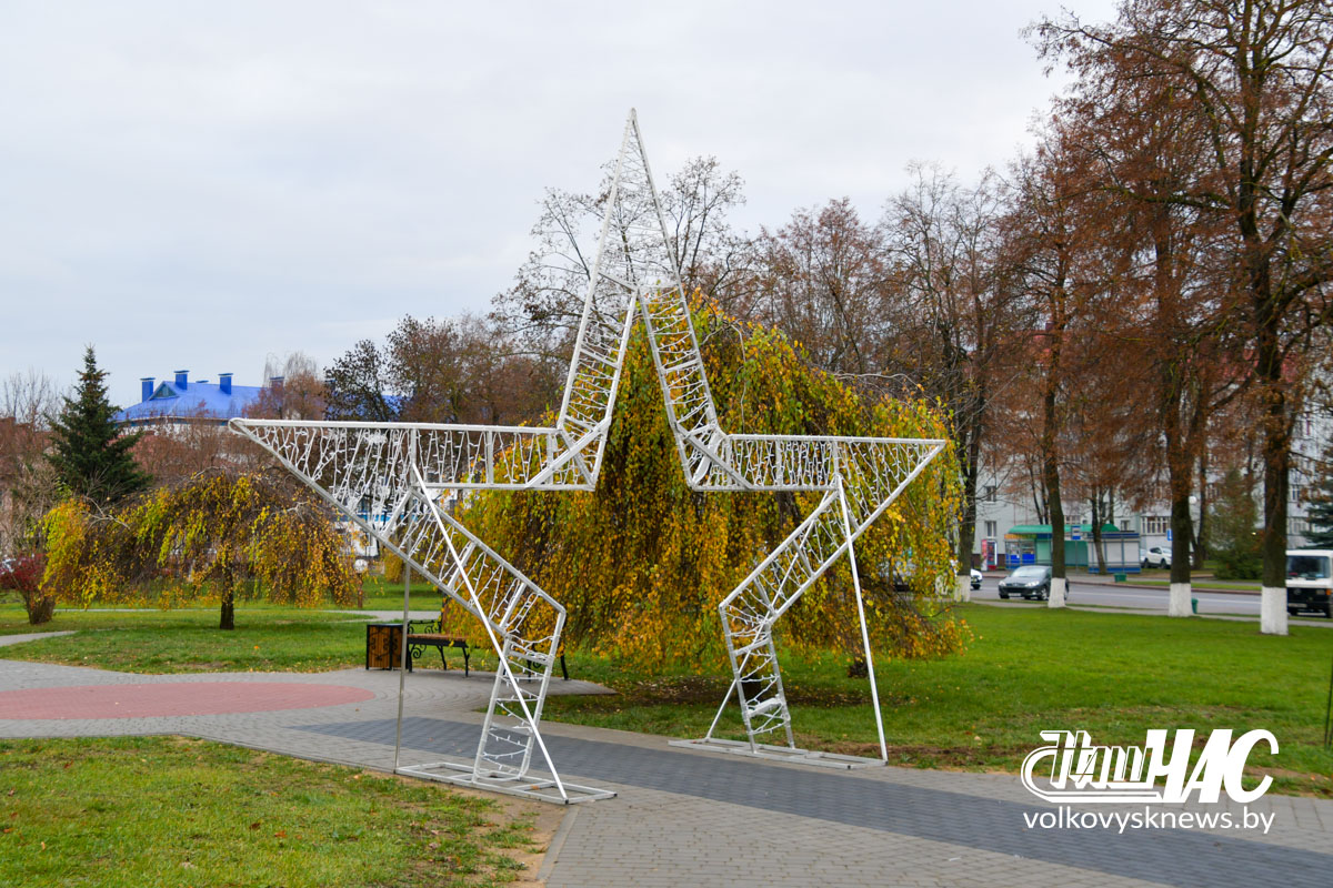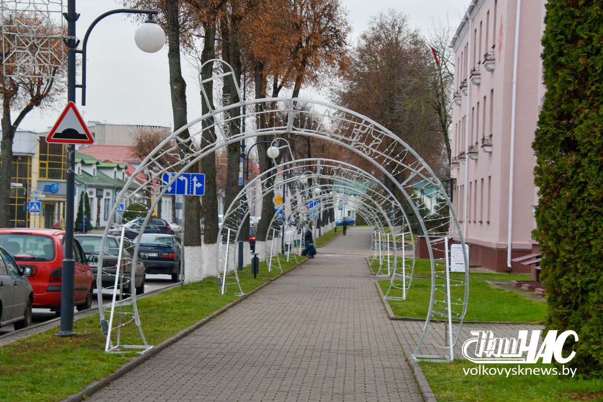 Фотофакт. Волковыск готовится к рождественским и новогодним праздникам. Улицы города украшаются иллюминацией и световыми конструкциями. На площади идет монтаж главной елки
