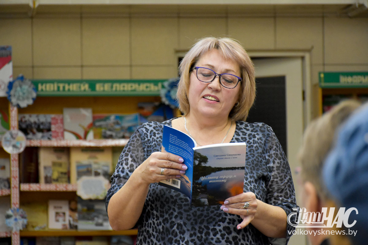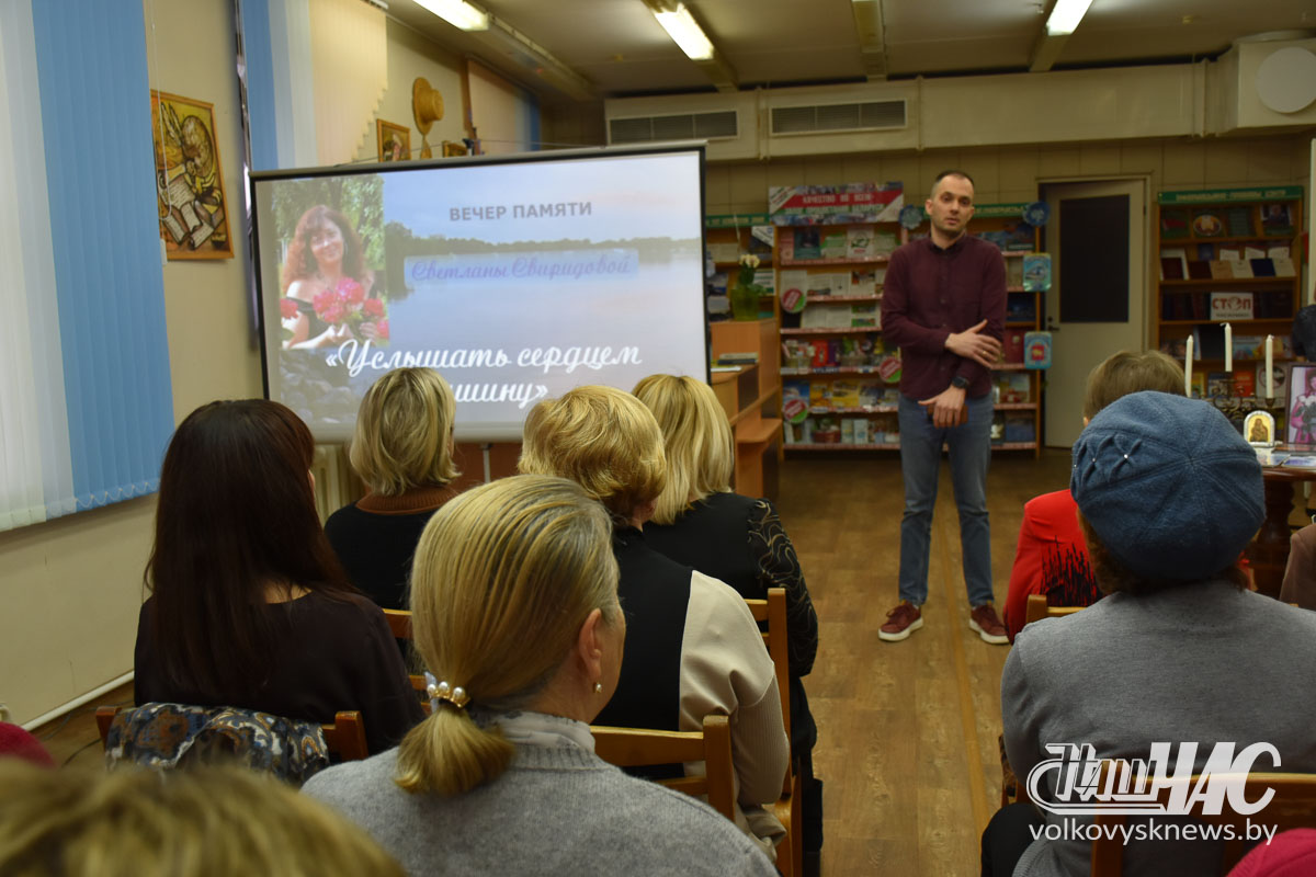 На вечере родные и близкие люди Светланы Викторовны - сын с семьей, друзья, коллеги, читатели - делились воспоминаниями о скромном, светлой души человеке, талантливой землячке. Они читали ее стихи и вспоминали о том, как дружили, трудились, любили. Светлана Викторовна проработала в филиале библиотекарем более 30 лет, была руководителем экологического клуба «Радуга», интеллектуально-познавательного клуба «Уникум».