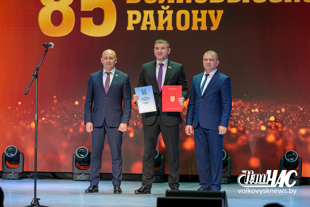 Дань уважения была отдана людям, награжденным высшими государственными наградами и удостоенным звания заслуженного работника той или иной отрасли, занесенным в Книгу Славы Гродненской области и удостоенным звания «Человек года Гродненщины». Для вручения Благодарственных писем от своего имени общественным деятелям, внесшим вклад в развитие района, на сцену поднялся председатель Волковысского районного Совета депутатов Сергей Якимович, который поздравил всех присутствующих от имени депутатского корпуса района: