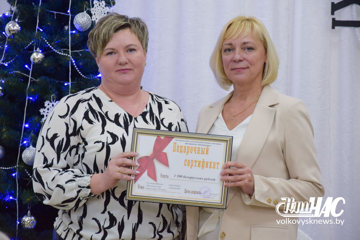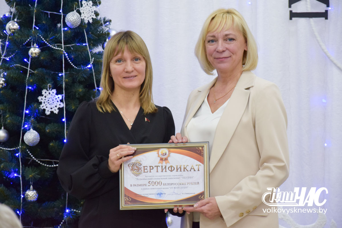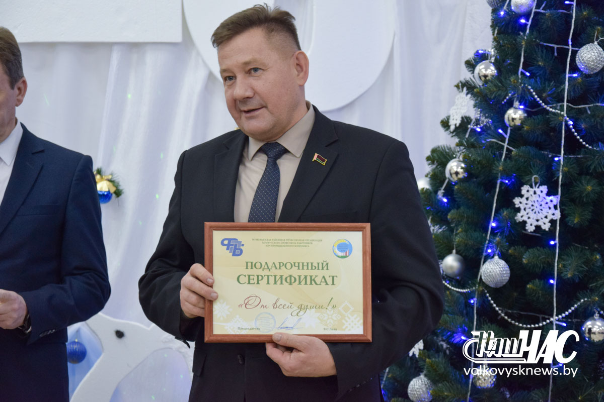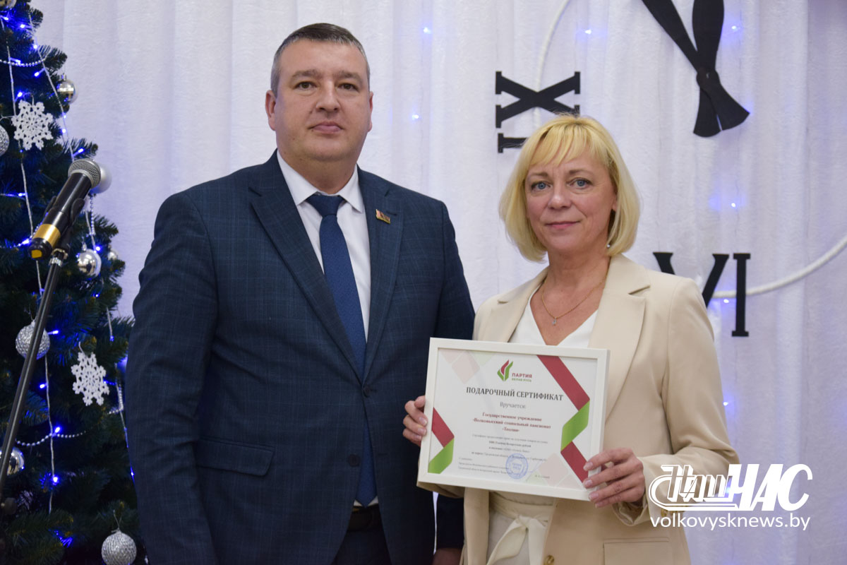 Заместитель председателя Волковысского райисполкома, председатель Волковысского районного отделения Белорусской партии «Белая Русь» Игорь Соловей пожелал присутствующим крепкого здоровья и веры в чудо. Он вручил подарочный сертификат от партии «Белая Русь» для приобретения товаров на сумму 1 000 рублей.