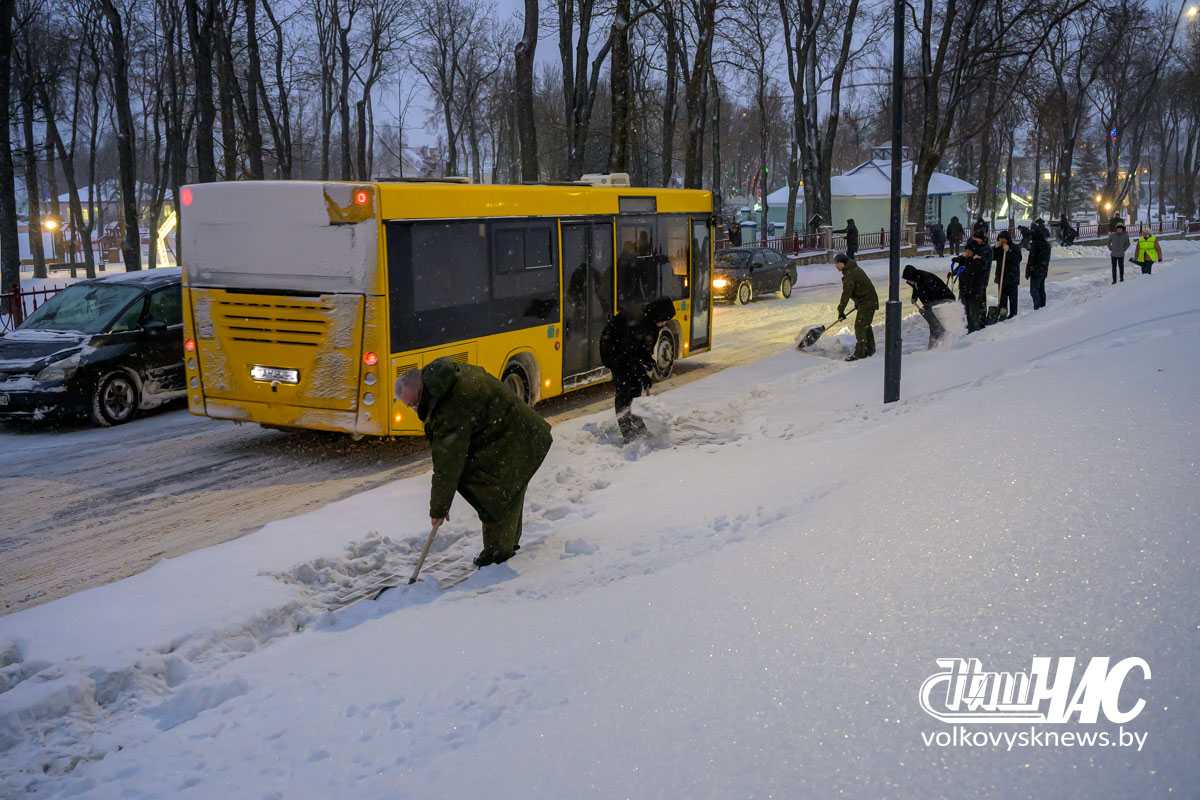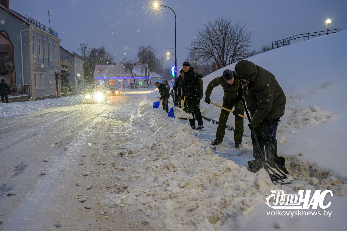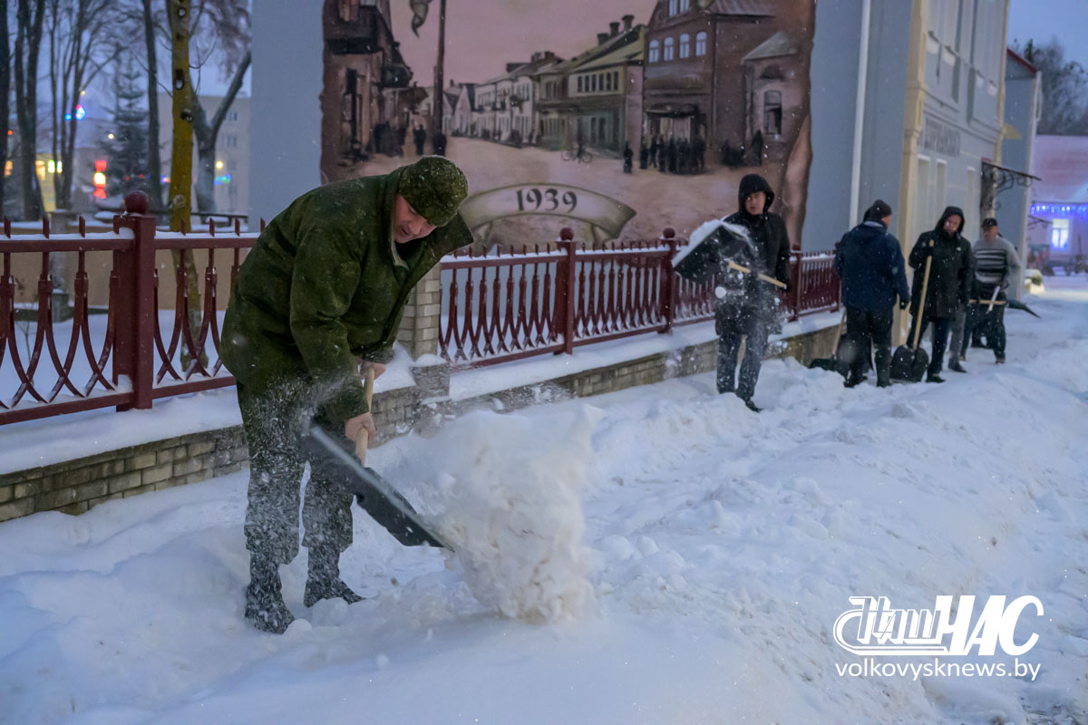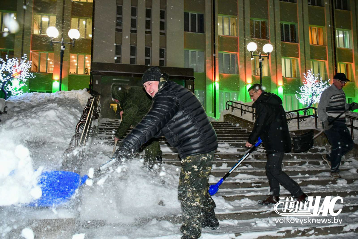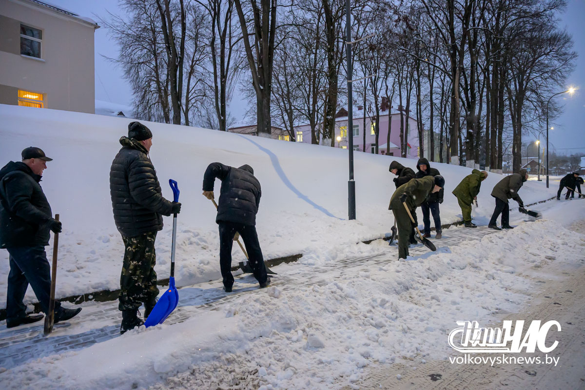 Еще затемно, в самом начале рабочего дня, на улицу вышли и работники Волковысского райисполкома во главе с членом Совета Республики Национального собрания Республики Беларусь, председателем райисполкома Дмитрием Захарчуком. Вооружившись лопатами, они расчистили территорию не только возле здания райисполкома — пошли дальше, освободив от снежных завалов тротуары перед зданием детской школы искусств и городским парком.