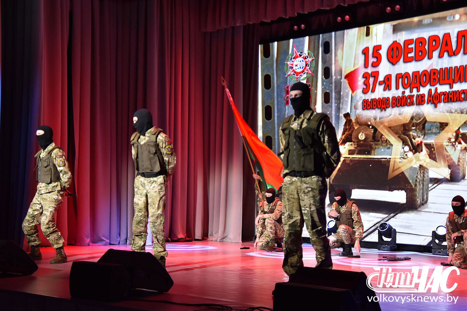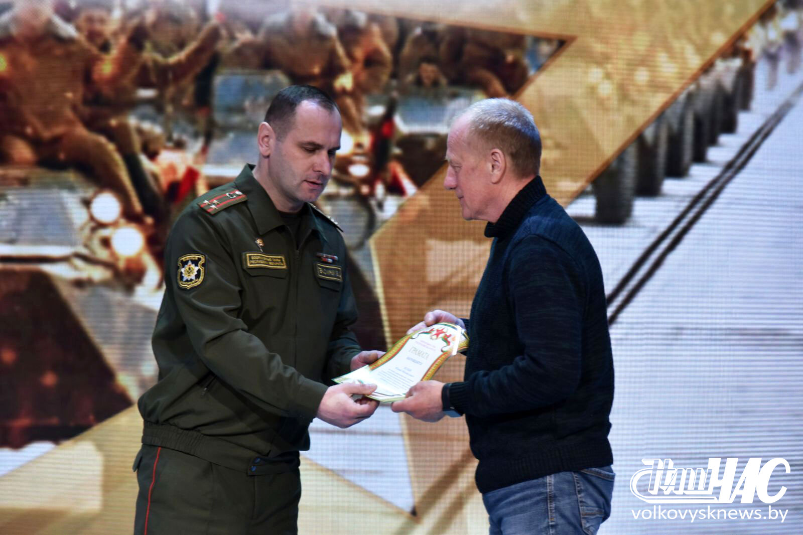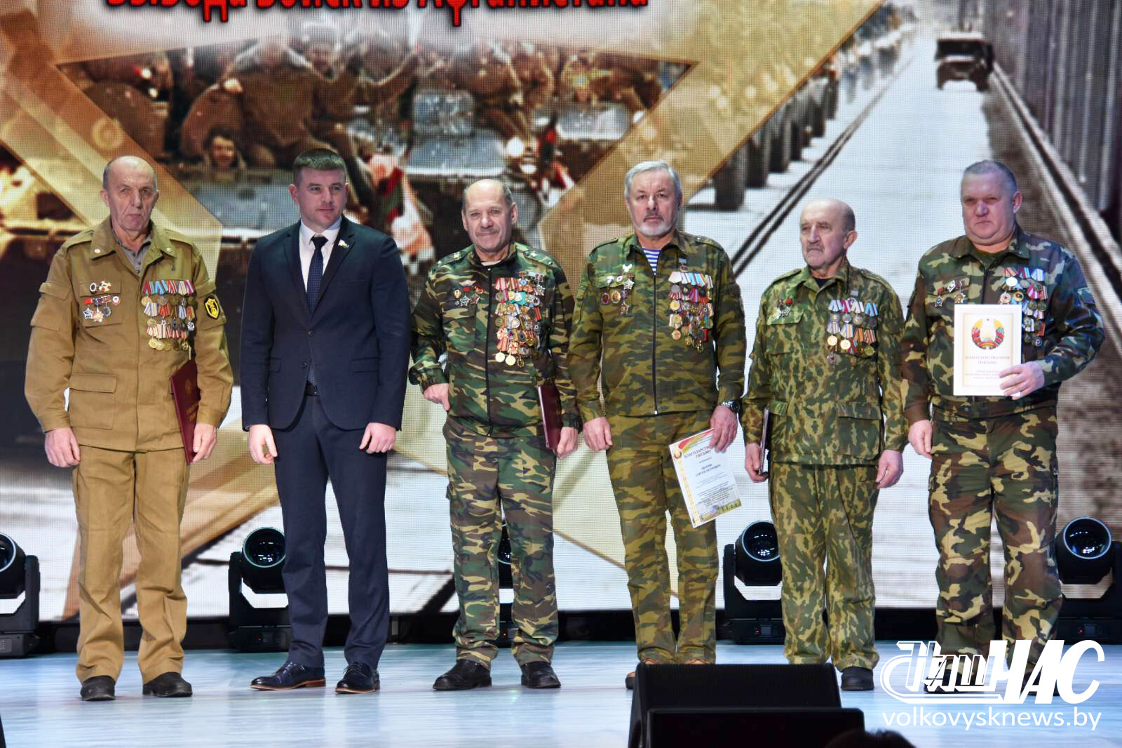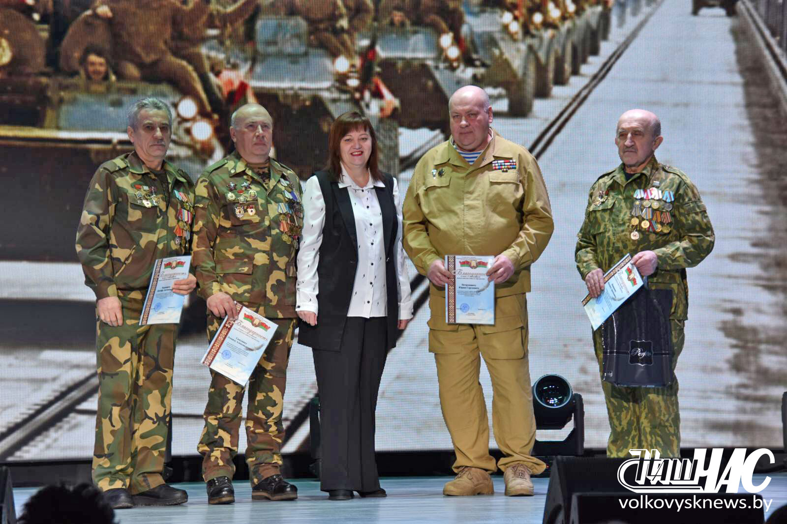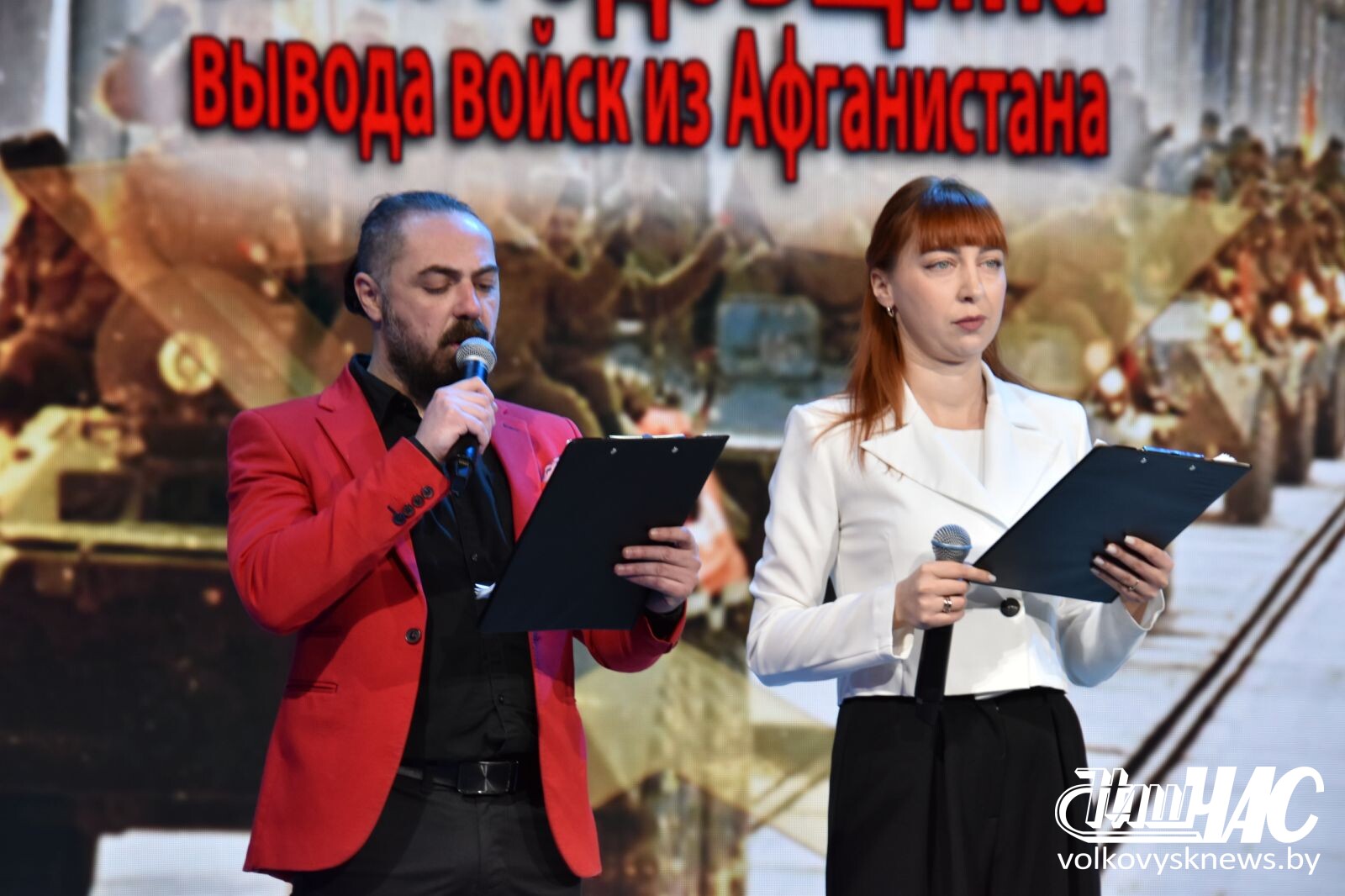 Добрые слова поздравлений, благодарности и признательности звучали в адрес воинов-интернационалистов из уст военного комиссара Волковысского, Берестовицкого и Свислочского районов полковника Владимира Герасимчука, временно исполняющего обязанности начальника Волковысского районного отдела внутренних дел подполковника милиции Вадима Наливайко, председателя районной ветеранской организации Тамары Лугович, заместителя директора территориального центра социального обслуживания населения Волковысского района Светланы Моржало, председателя Волковысской районной профсоюзной организации Белорусского профсоюза работников агропромышленного комплекса Валентина Зайца, председателя Волковысской районной организации РОО «Белая Русь», главного редактора районной газеты «Наш час» Дмитрия Юшина, первого секретаря Волковысской районной организации ОО «БРСМ» Натальи Климчук. Все они награждали воинов-интернационалистов грамотами, благодарственными письмами или ценными подарками. Заместитель председателя Волковысской районной организации ОО «Белорусский союз женщин», начальник отдела загса Волковысского райисполкома Елена Новацкая чествовала вдов воинов-интернационалистов и женщин, служивших и работавших в Демократической Республике Афганистан в период нахождения там советских военнослужащих. Виктор Почебут вручил воинам-интернационалистам памятные значки в честь юбилеев различных родов войск. Исполнители и коллективы Волковысского районного центра культуры, воспитанники военно-патриотического клуба «Бастион» и другие волковысские артисты выступили с тематическими концертными номерами.