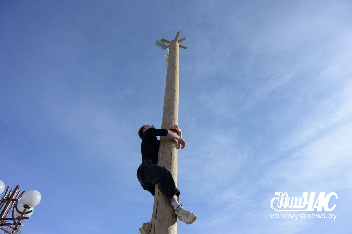 Еще одной зрелищной частью гулянья стал штурм масленичного столба, на вершине которого были закреплены призы. Смельчаки демонстрировали силу и упорство, а зрители дружно поддерживали участников.