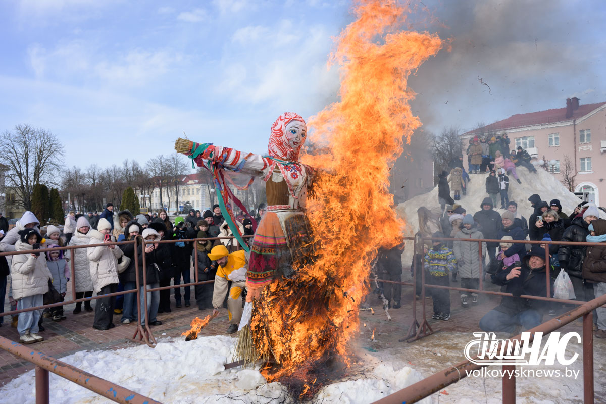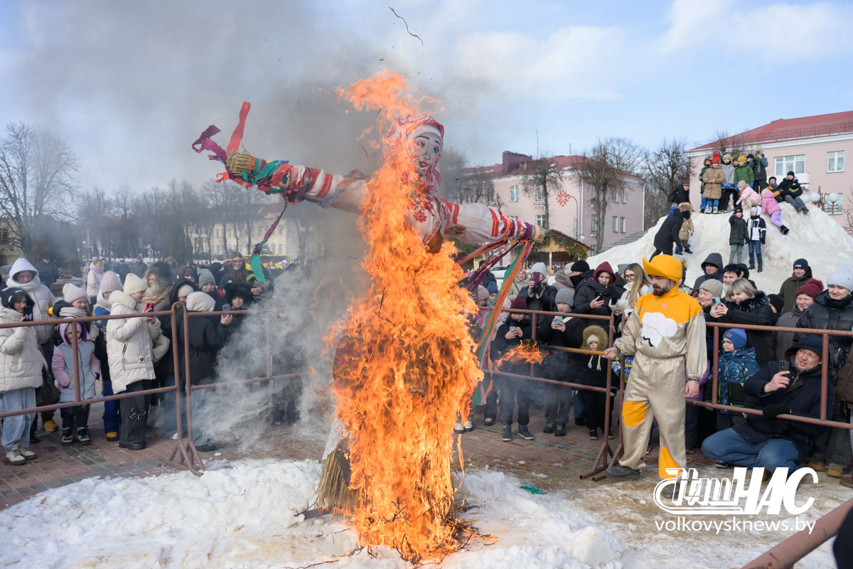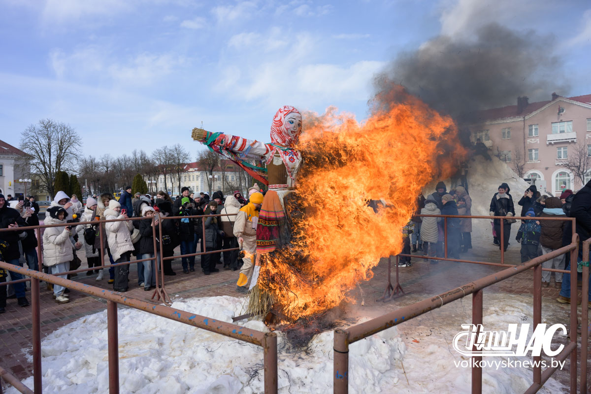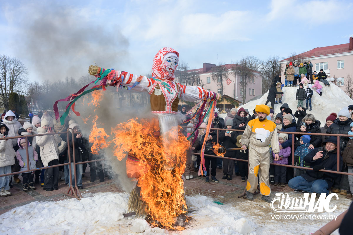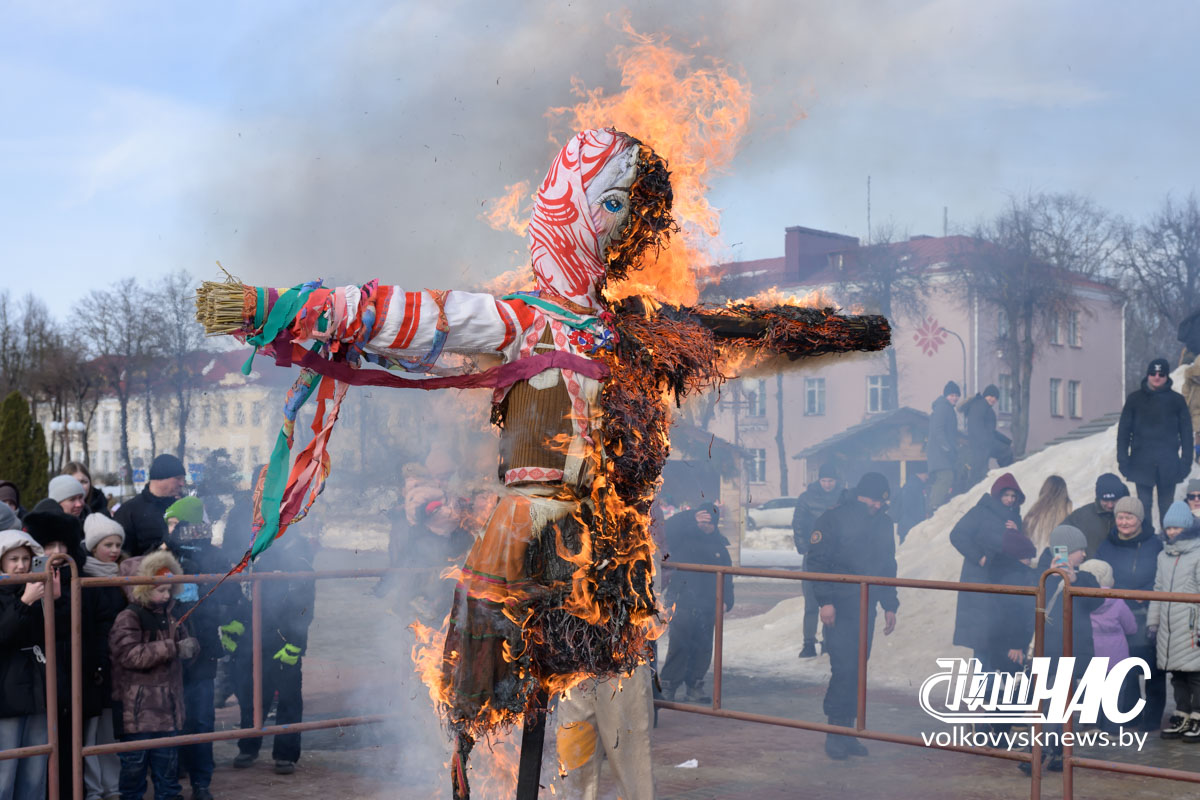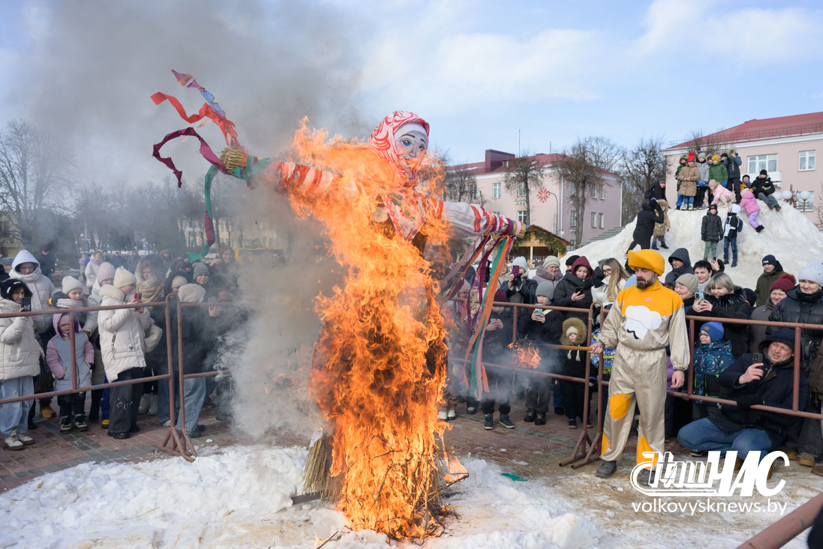 Кульминацией праздника стало сжигание чучела — символа зимы, холода и стужи.