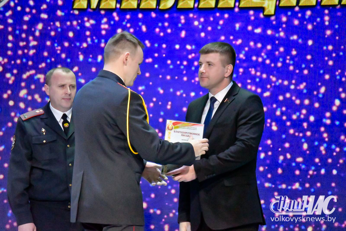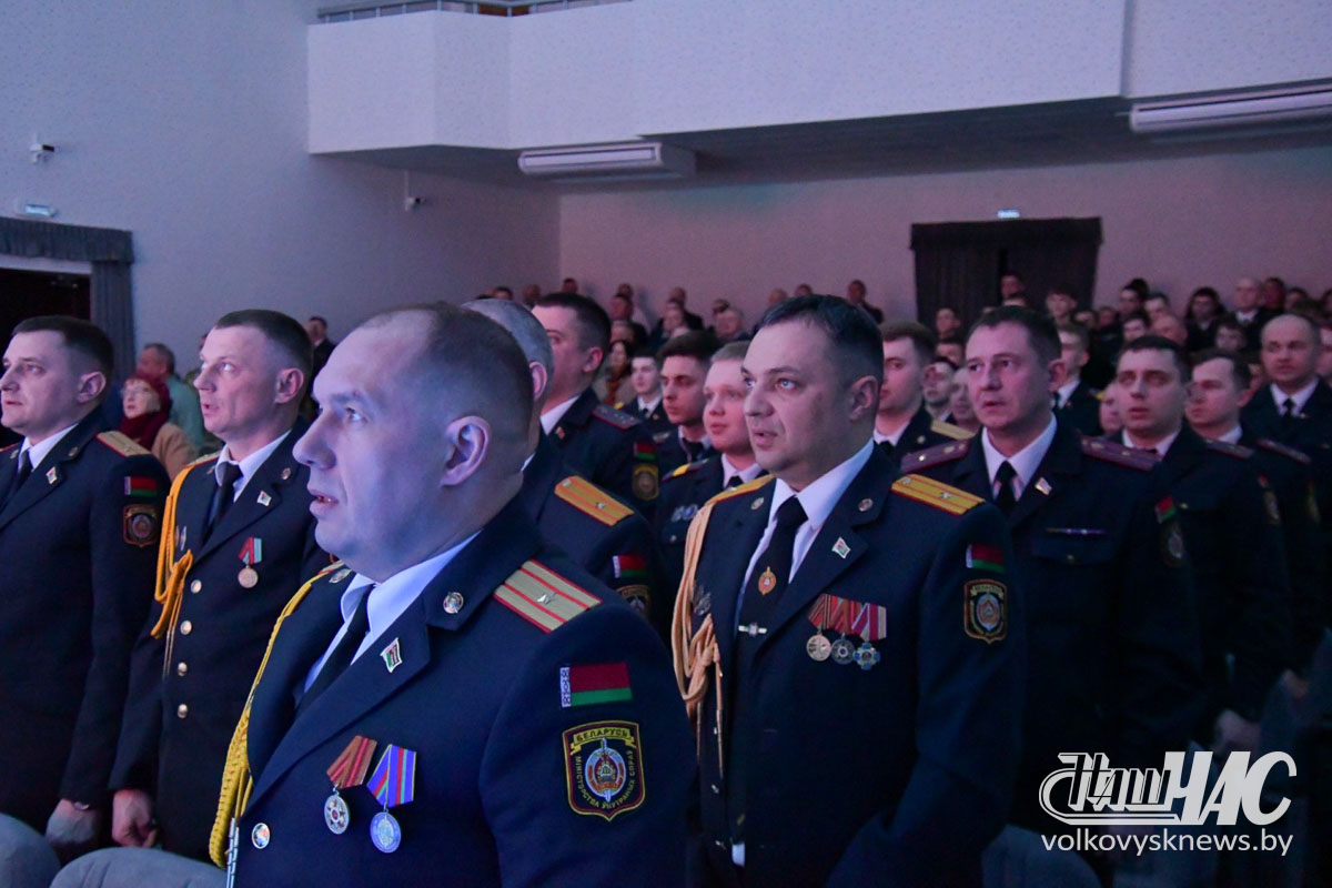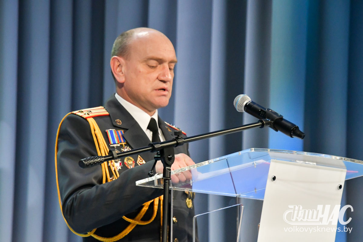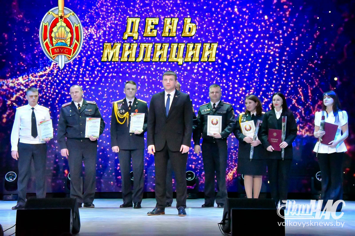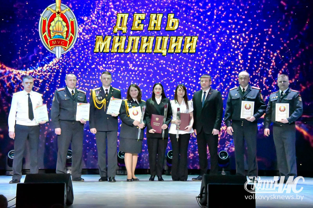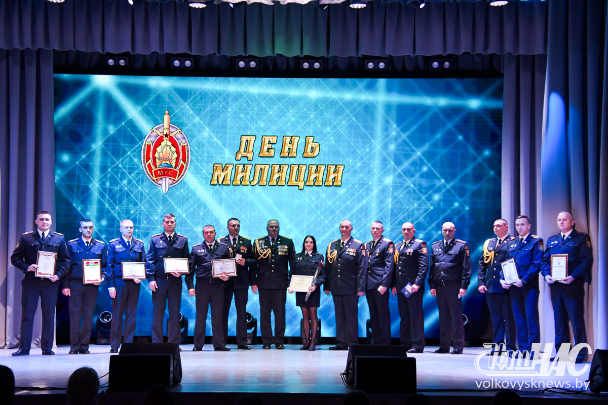 Со словами поздравлений обратился член Совета Республики Национального собрания Республики Беларусь, председатель Волковысского райисполкома Дмитрий Захарчук. «Для вас понятие чести, справедливости и мужества — не просто красивые слова, а дело всей жизни. Вы верны долгу и традициям своей службы. Вас отличают высокие личные качества, стремление прийти на помощь и готовность к риску ради тех, кто нуждается в защите. Вы несете службу днем и ночью, в будни и праздники, не считаясь с личным временем. Несмотря на многочисленные трудности и напряженный ритм работы, успешно справляетесь с выполнением своих служебных обязанностей. Ваши грамотные, четкие и оперативные действия способствуют созданию безопасной обстановки, благоприятной для труда и отдыха жителей и гостей нашего района. Выражаю особую признательность ветеранам органов внутренних дел за вклад в профессиональную подготовку, воспитание личного состава отдела. Благодарю матерей и жен, которые разделяют в полной мере со своими родными и близкими все сложности беспокойных милицейских будней и остаются надежным тылом для своих мужей и сыновей. Мы живем в непростое время. Сегодня перед нашей страной стоят реальные угрозы, что требует обеспечения четких и слаженных действий всех служб органов внутренних дел, ответственного и честного выполнения каждым сотрудником своего служебного долга», — подчеркнул глава района, а затем начал церемонию награждения лучших сотрудников волковысской милиции.