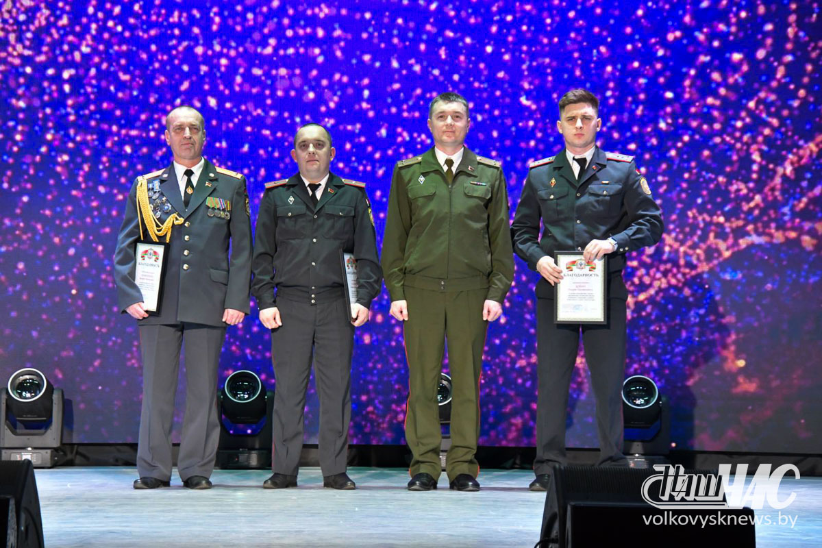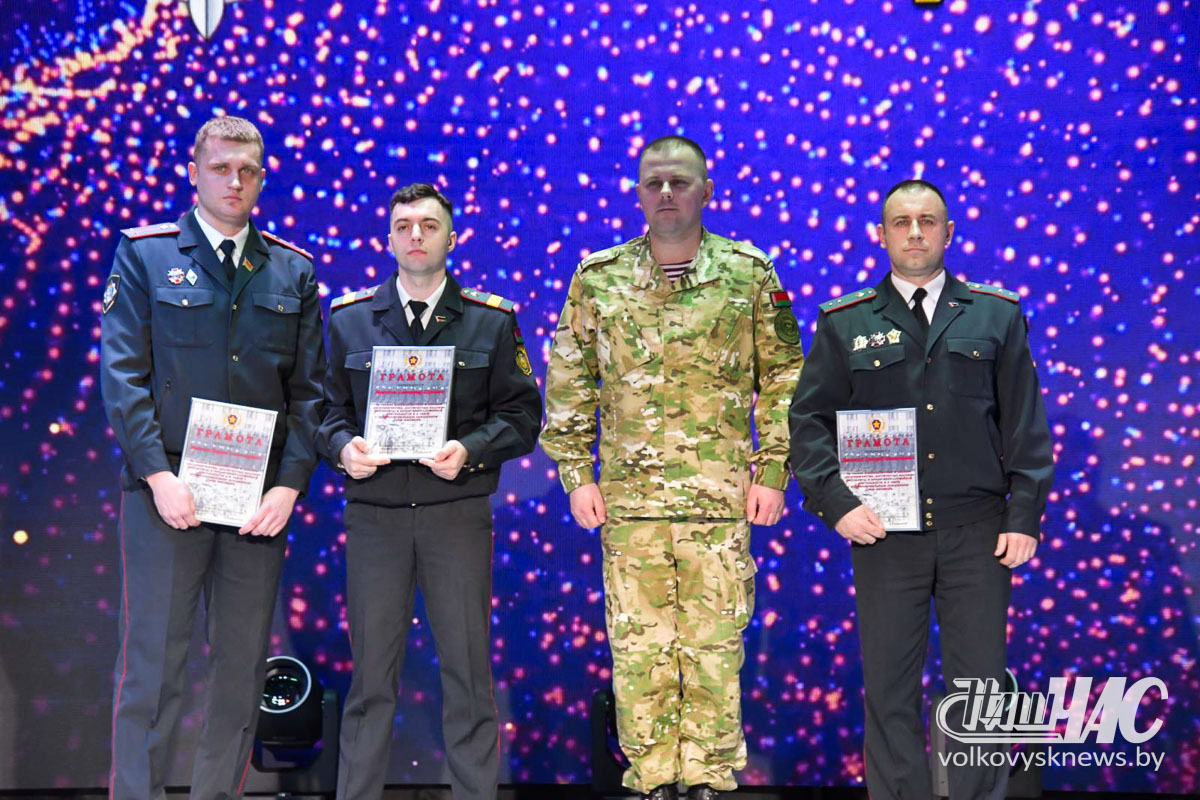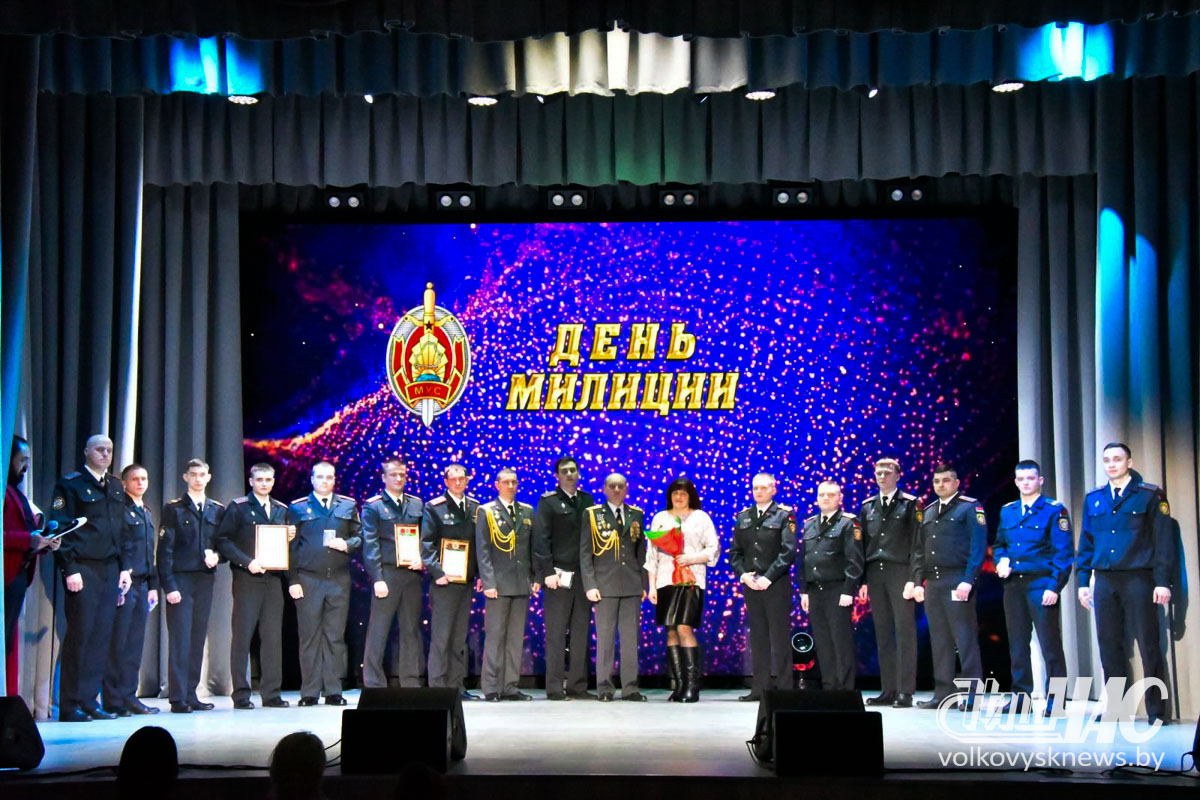Поздравления, пожелания и заслуженные награды адресовали в этот день героям торжества и другие почетные гости: представитель по взаимодействию с правоохранительными органами Волковысского благочиния, настоятель храма Благовещения Пресвятой Богородицы протоиерей Дмитрий Белоцкий, заместитель военного комиссара Волковысского, Берестовицкого и Свислочского районов подполковник Геннадий Голубев, заместитель начальника Волковысского районного отдела Следственного комитета Республики Беларусь подполковник юстиции Инна Сидор, первый заместитель начальника Волковысского районного отдела по чрезвычайным ситуациям подполковник внутренней службы Геннадий Талерчик, начальник Волковысского районного отдела Департамента охраны МВД Республики Беларусь подполковник милиции Владимир Буйницкий, заместитель начальника Волковысского межрайонного отдела Государственного комитета судебных экспертиз подполковник юстиции Роман Кучеренко, заместитель начальника исправительного учреждения ИК-11 УДИН МВД по Гродненской области подполковник внутренней службы Виталий Щилик, заместитель командира по идеологической работе 3-го отдельного стрелкового батальона в/ч 7404 лейтенант Александр Рябчук, член Волковысского районного комитета ОО «БРСМ» София Борис. От имени ветеранов милиции выступил председатель ветеранской организации Волковысского РОВД Михаил Михайлович Мотыль. Торжественную часть разбавили концертными номерами коллективы и сольные артисты Волковысского РЦК.