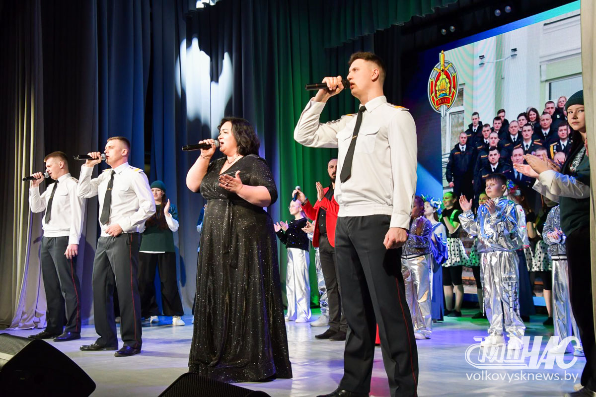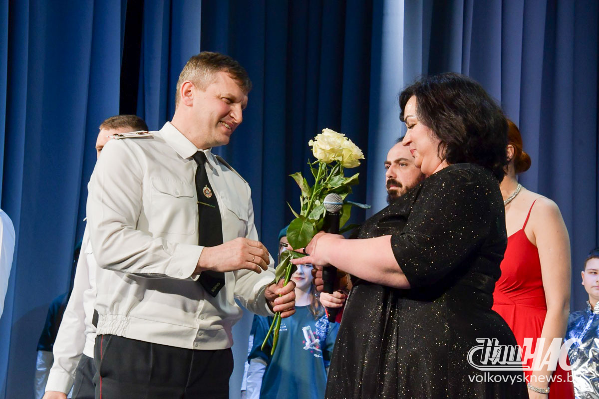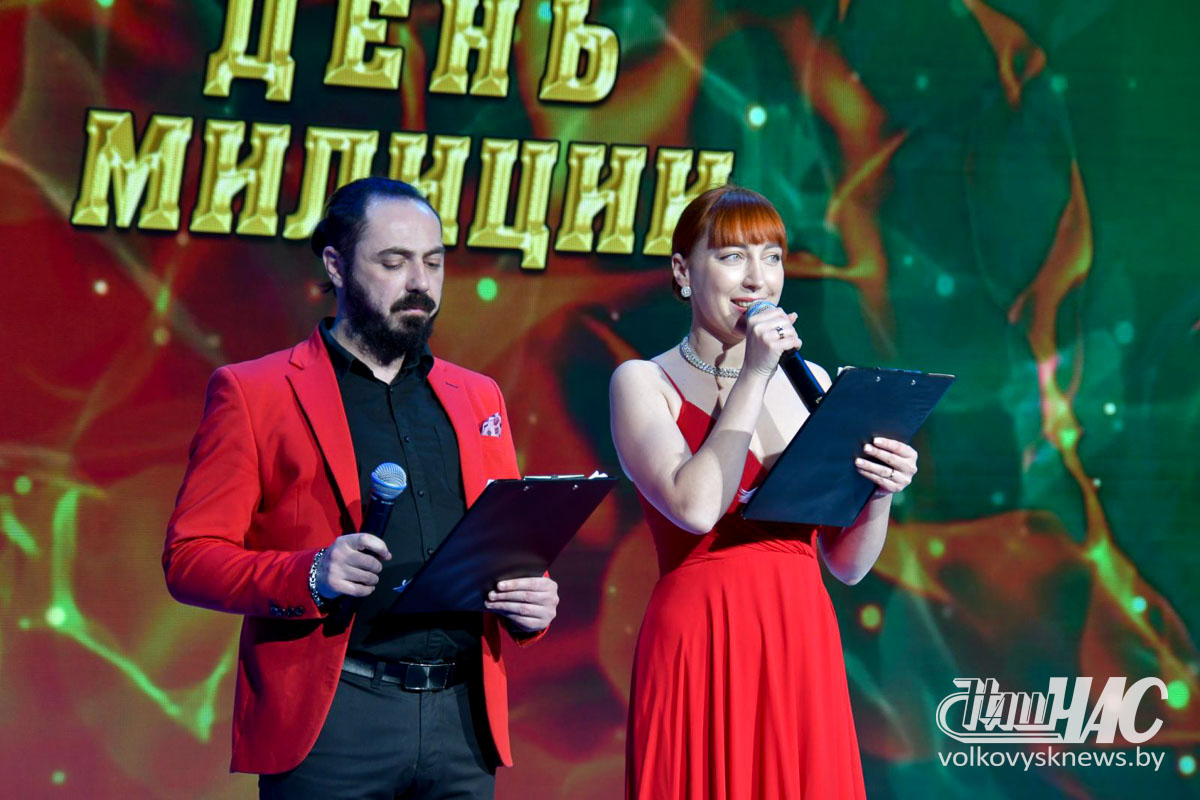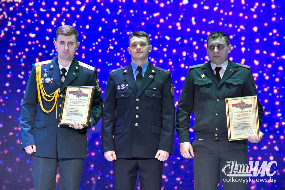 Поздравления, пожелания и заслуженные награды адресовали в этот день героям торжества и другие почетные гости: представитель по взаимодействию с правоохранительными органами Волковысского благочиния, настоятель храма Благовещения Пресвятой Богородицы протоиерей Дмитрий Белоцкий, заместитель военного комиссара Волковысского, Берестовицкого и Свислочского районов подполковник Геннадий Голубев, заместитель начальника Волковысского районного отдела Следственного комитета Республики Беларусь подполковник юстиции Инна Сидор, первый заместитель начальника Волковысского районного отдела по чрезвычайным ситуациям подполковник внутренней службы Геннадий Талерчик, начальник Волковысского районного отдела Департамента охраны МВД Республики Беларусь подполковник милиции Владимир Буйницкий, заместитель начальника Волковысского межрайонного отдела Государственного комитета судебных экспертиз подполковник юстиции Роман Кучеренко, заместитель начальника исправительного учреждения ИК-11 УДИН МВД по Гродненской области подполковник внутренней службы Виталий Щилик, заместитель командира по идеологической работе 3-го отдельного стрелкового батальона в/ч 7404 лейтенант Александр Рябчук, член Волковысского районного комитета ОО «БРСМ» София Борис. От имени ветеранов милиции выступил председатель ветеранской организации Волковысского РОВД Михаил Михайлович Мотыль. Торжественную часть разбавили концертными номерами коллективы и сольные артисты Волковысского РЦК.