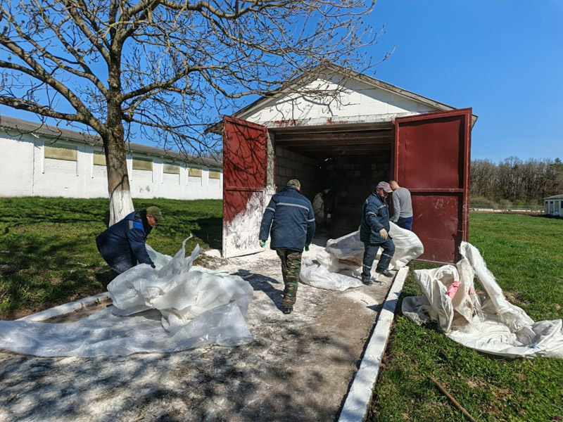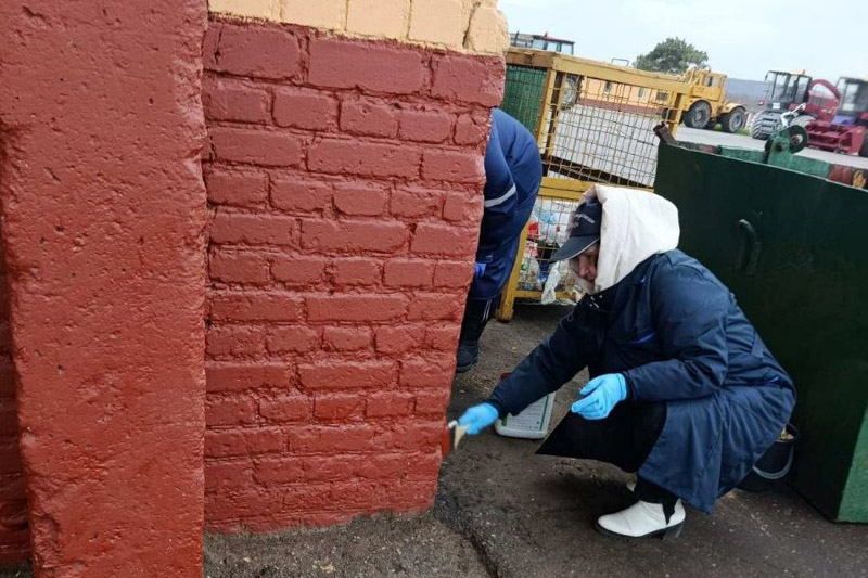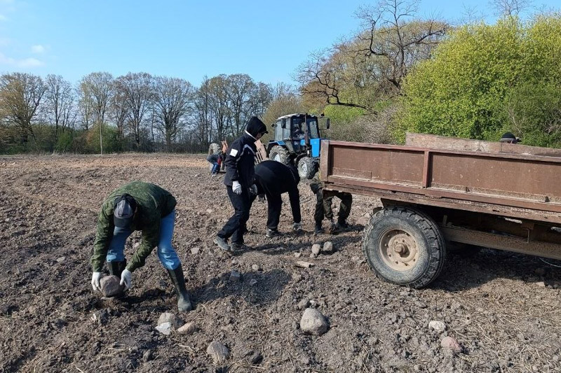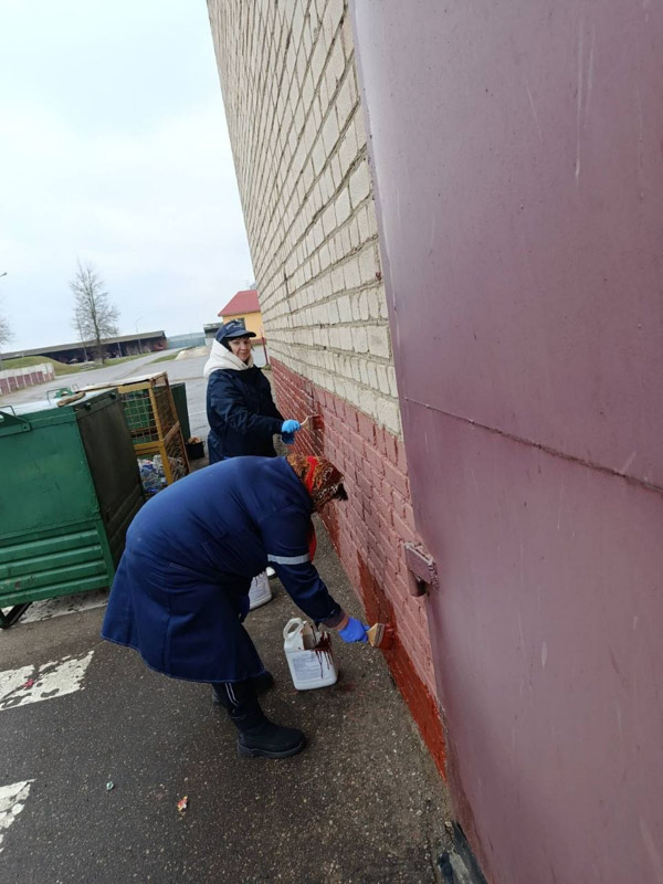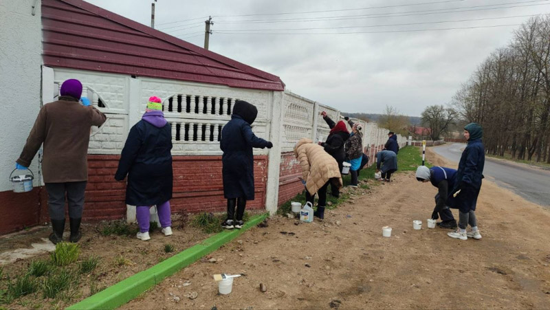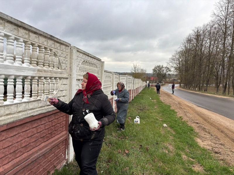 Работники СШ № 3 г. Волковыска наводят порядок на площадке для хранения техники. Возле памятника землякам в деревне Колядичи работники хозяйства красят забор, освежают побелку и занимаются вырубкой кустарника. Также в это время на полях производится сбор камней.