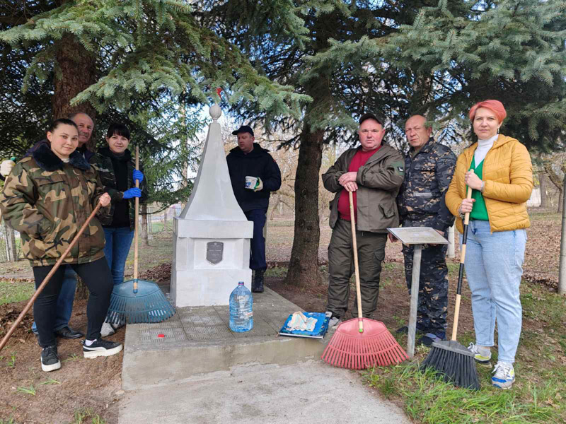 А территорию возле мемориального захоронения в деревне Бискупцы помогают убирать сотрудники прокуратуры Волковысского района и Волковысского сельисполкома.