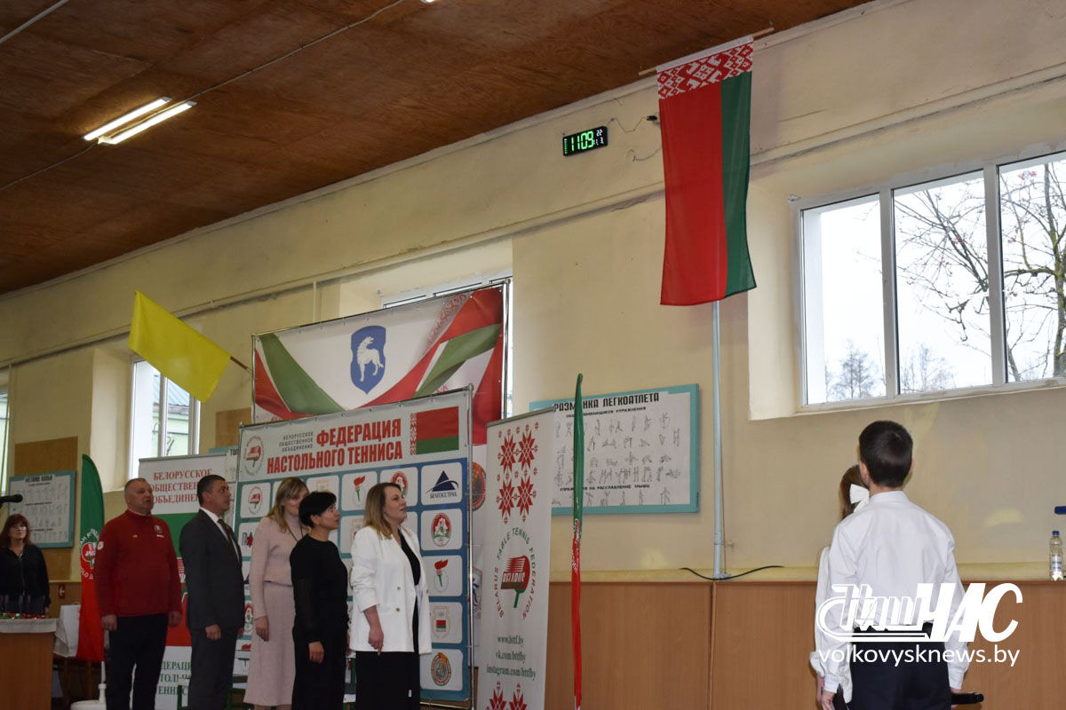 В торжественной церемонии открытия этого спортивного праздника приняли участие генеральный секретарь БОО «Федерация настольного тенниса» Сергей Бутрим, заведующий сектором спорта и туризма Волковысского райисполкома Иван Захаренко, директор ДЮСШ № 2 Наталья Чумакова, директор ДЮСШ № 1 Елена Плавская, методист районного учебно-методического кабинета Ирина Красновская, пожелавшие ребятам успешных выступлений. С концертными номерами выступили участницы танцевальной группы «Грация» Волковысского центра творчества детей и молодежи под руководством Ольги Соловьевой.