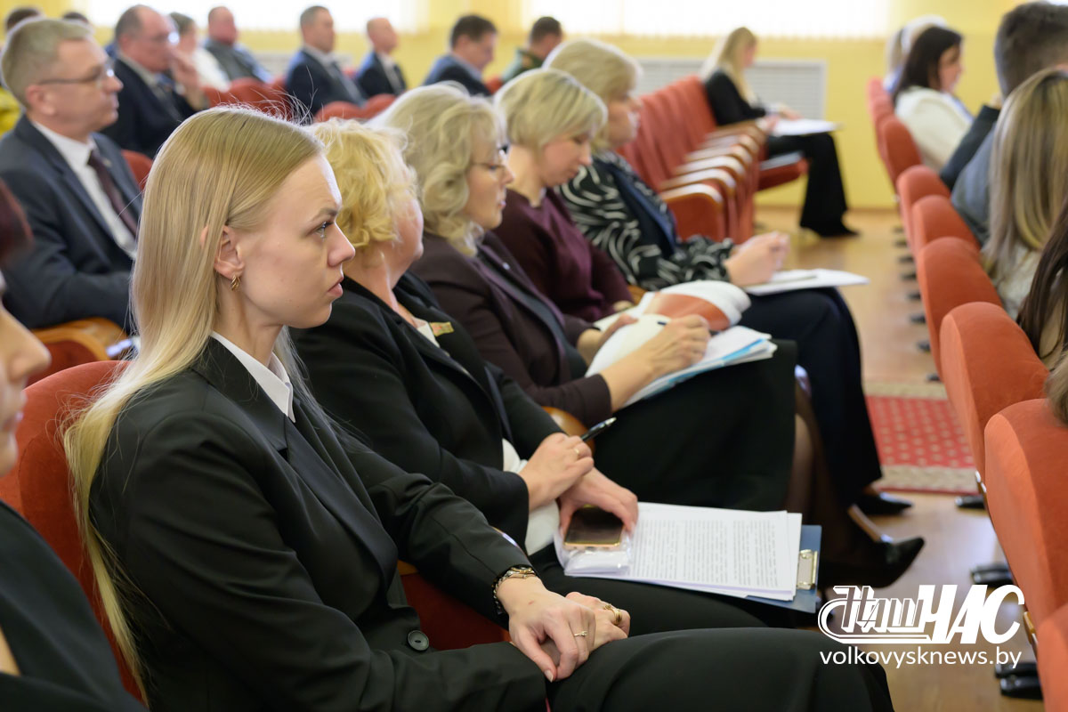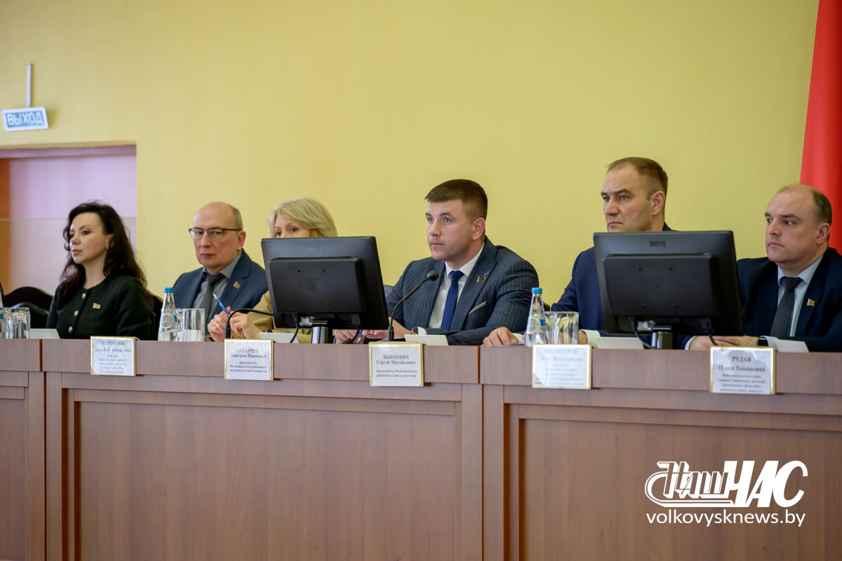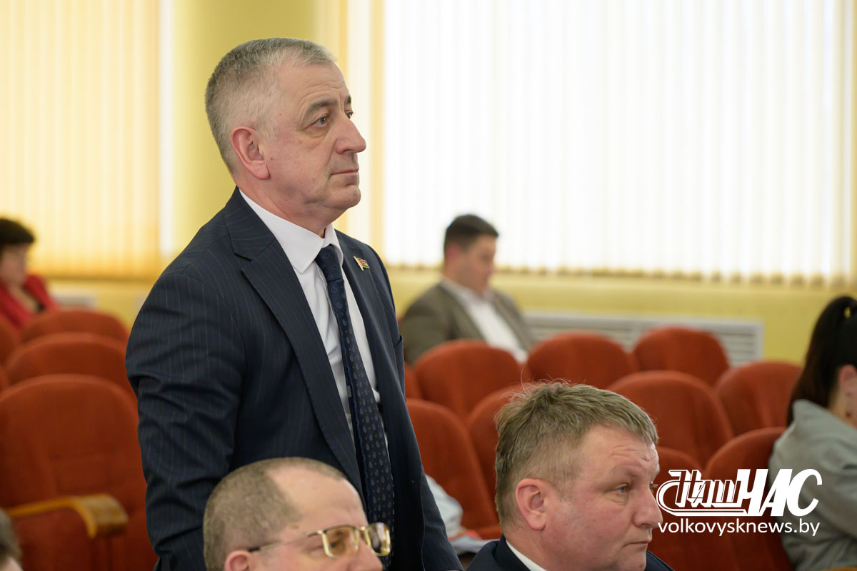 Вторым в повестке дня был вопрос «Об итогах социально-экономического развития Волковысского района в 2025 году и задачах на 2026 год». С информацией по курируемым отраслям выступили заместители председателя райисполкома Андрей Клусов и Игорь Соловей, начальник управления экономики, торговли и услуг райисполкома Василий Серый и заместитель начальника управления сельского хозяйства и продовольствия райисполкома Александр Даник.