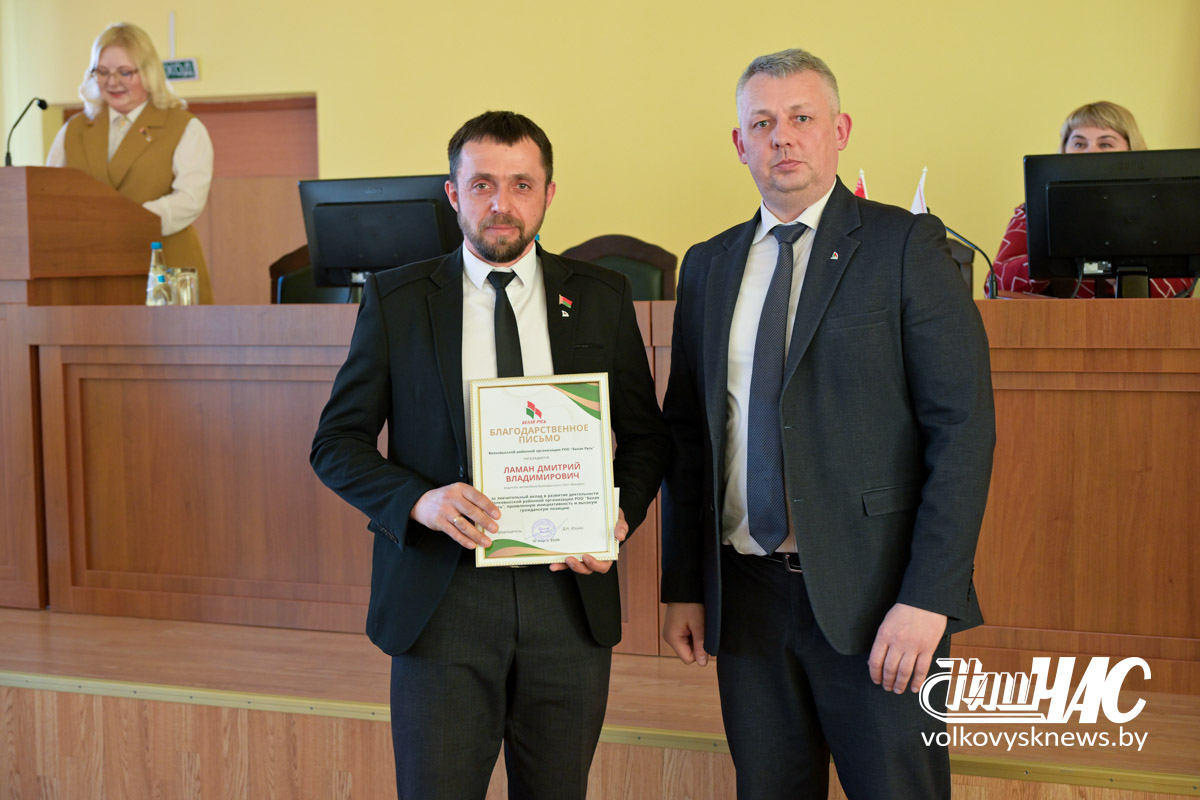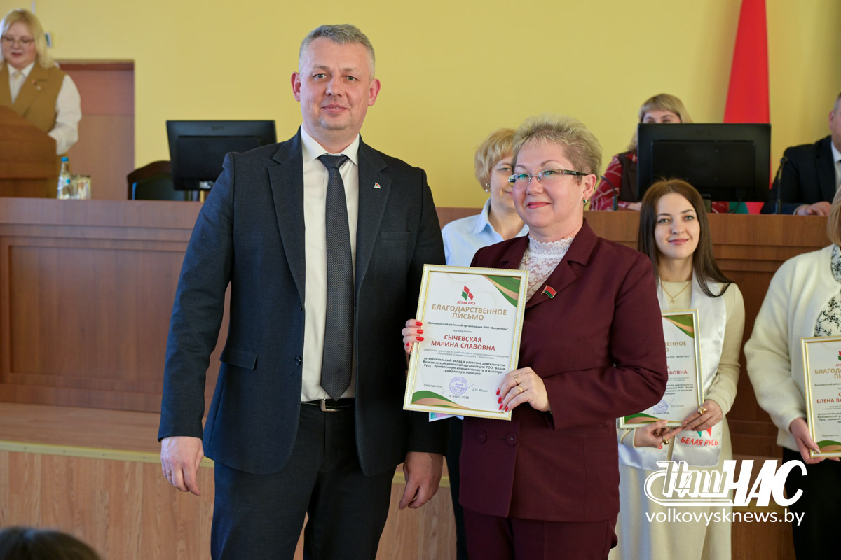 – «Белая Русь» строит свое будущее на прочном фундаменте патриотизма, сохранения исторической правды, традиций национальной культуры и объединяет ответственных, активных граждан вокруг общих целей и приоритетов, – подчеркнул докладчик. – В последнее время наблюдается устойчивая динамика роста численности объединения. Сегодня Волковысская районная организация РОО «Белая Русь» состоит из 76 первичек, в которые входят 2134 человека. Особо хочу отметить первичные организации, которые активно принимают в свои ряды новых членов. Это ОАО «Волковысский мясокомбинат» (+55), ОАО «Красносельскстройматериалы» (+197), Волковысское ОАО «Беллакт» (+191), КУП «Волковысское коммунальное хозяйство» (+96), УЗ «Волковысская ЦРБ» (+17), ГУО «Дошкольный центр развития ребенка №7» (+19).